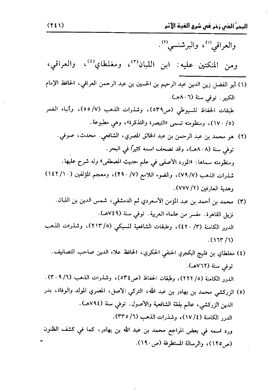 (¬5) الزركشي محمد بن بهادر بن عبد اللَّه، التركي الأصل، المصري المولد والوفاة، بدر الدين الزركشي، عالم بفقه الشافعية والأصول. توفي سنة (794 هـ).