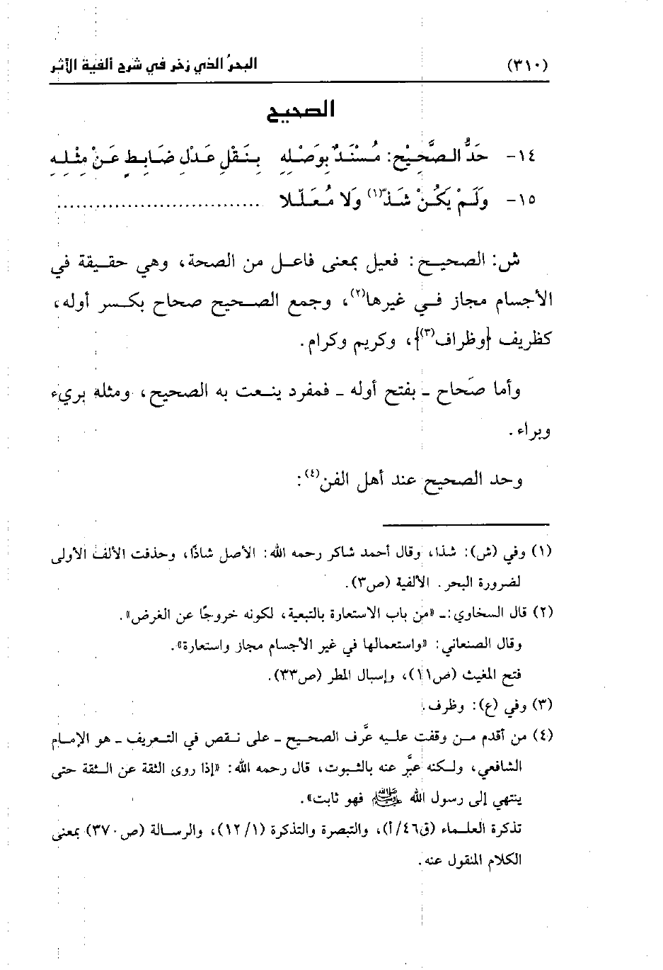 14 - حَدُّ الصَّحِيْح: مُسْنَدٌ بِوَصْلِهِ ... بِنَقْلِ عَدْلِ ضَابِطٍ عَنْ مِثْلِهِ