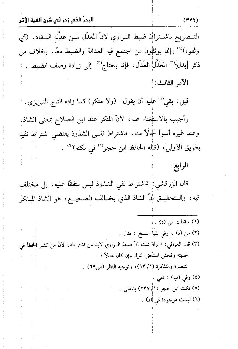 (¬3) قال العراقي: "ولا شك أنّ ضبط الراوي لابد من اشتراطه، لأنّ من كثر الخطأ في حديثه وفحش استحق الترك وإن كان عدلًا".
