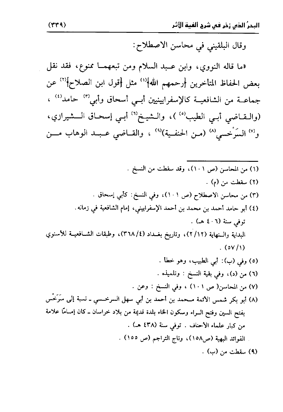 كتاب البحر الذي زخر في شرح ألفية الأثر (اسم الجزء: 1)