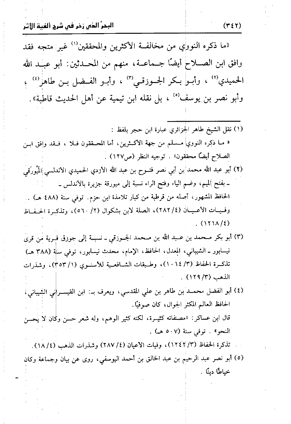 "ما ذكره النووي مسلم من جهة الأكثرين، أما المحققون فلا، فقد وافق ابن الصلاح أيضًا محققون". توجيه النظر (ص 127).
