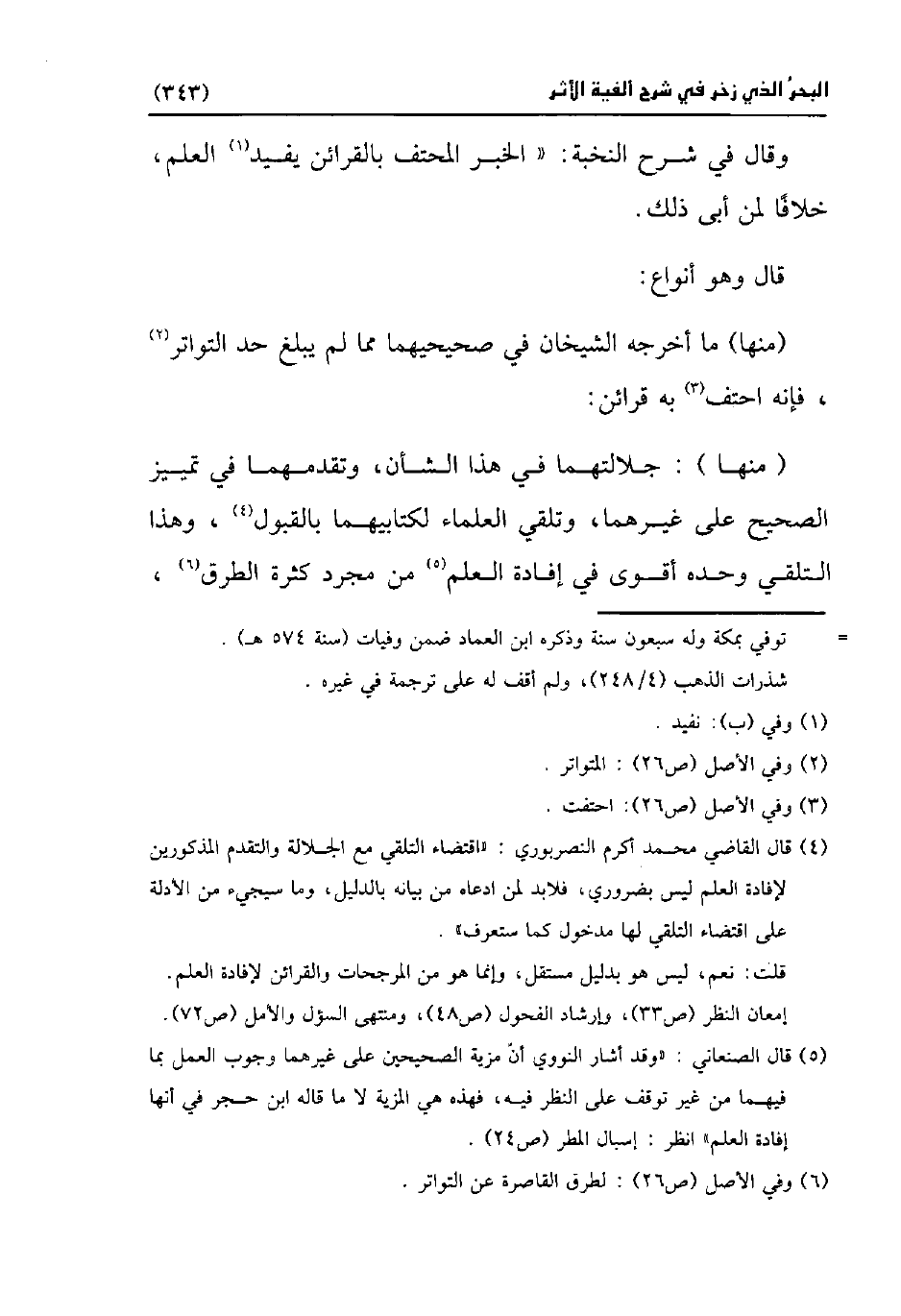 (¬4) قال القاضي محمد أكرم النصربوري: "اقتضاء التلقي مع الجلالة والتقدم المذكورين لإفادة العلم ليس بضروري، فلابد لمن ادعاه من بيانه بالدليل، وما سيجيء من الأدلة على اقتضاء التلقي لها مدخول كما ستعرف".