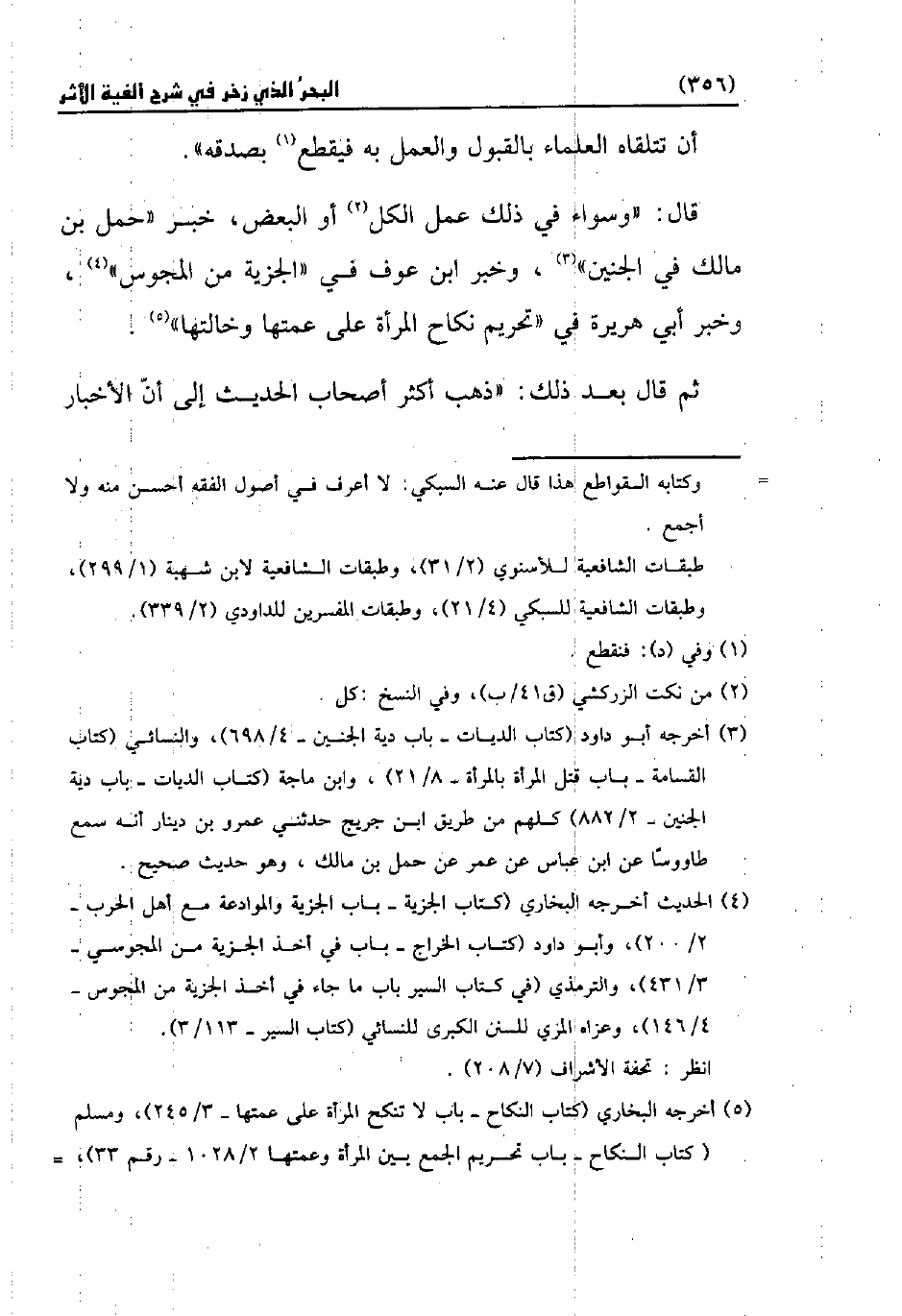 قال: "وسواء في ذلك عمل الكل (¬2) أو البعض، خبر "حمل بن مالك في الجنين" (¬3)، وخبر ابن عوف في "الجزية من المجوس" (¬4)، وخبر أبي هريرة في "تحريم نكاح المرأة على عمتها وخالتها" (¬5).
