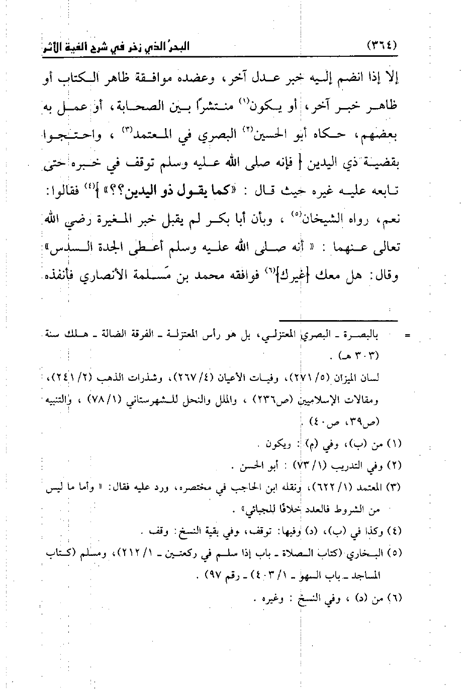 (¬5) البخاري (كتاب الصلاة - باب إذا سلم في ركعتين - 1/ 112)، ومسلم (كتاب المساجد - باب السهو - 1/ 403) - رقم 97).