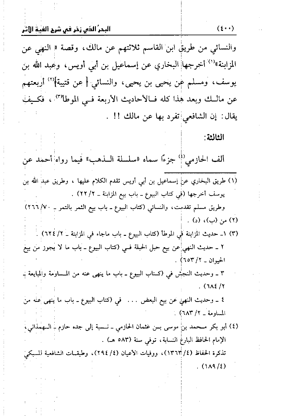(¬4) أبو بكر محمد بن موسى بن عثمان الحازمي -نسبة إلى جده حازم- الهمذاني، الإمام الحافظ البارع النسابة، توفي سنة (583 هـ).