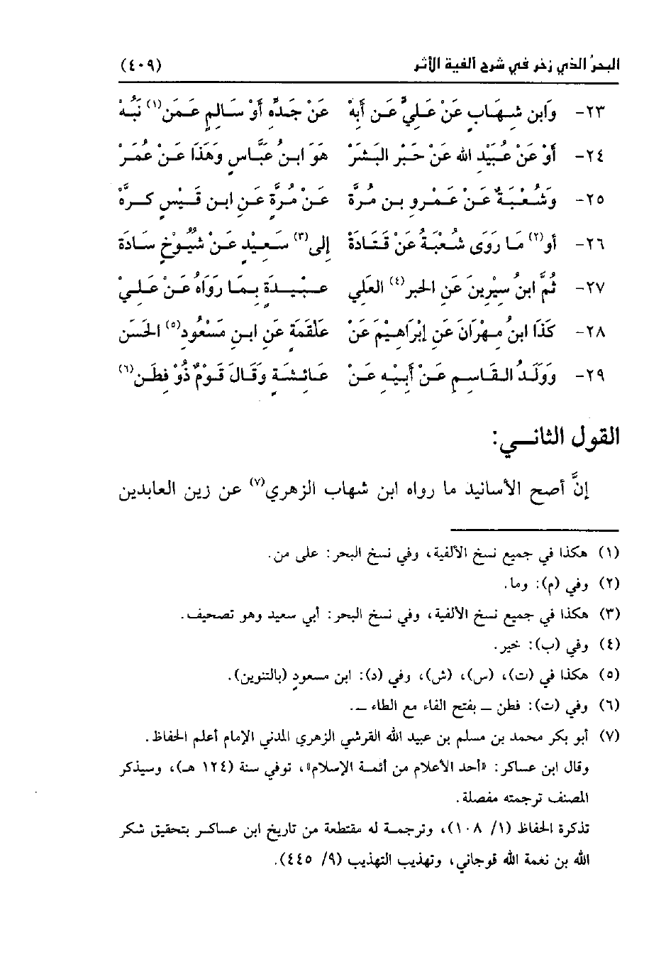 إنَّ أصح الأسانيد ما رواه ابن شهاب الزهري (¬7) عن زين العابدين