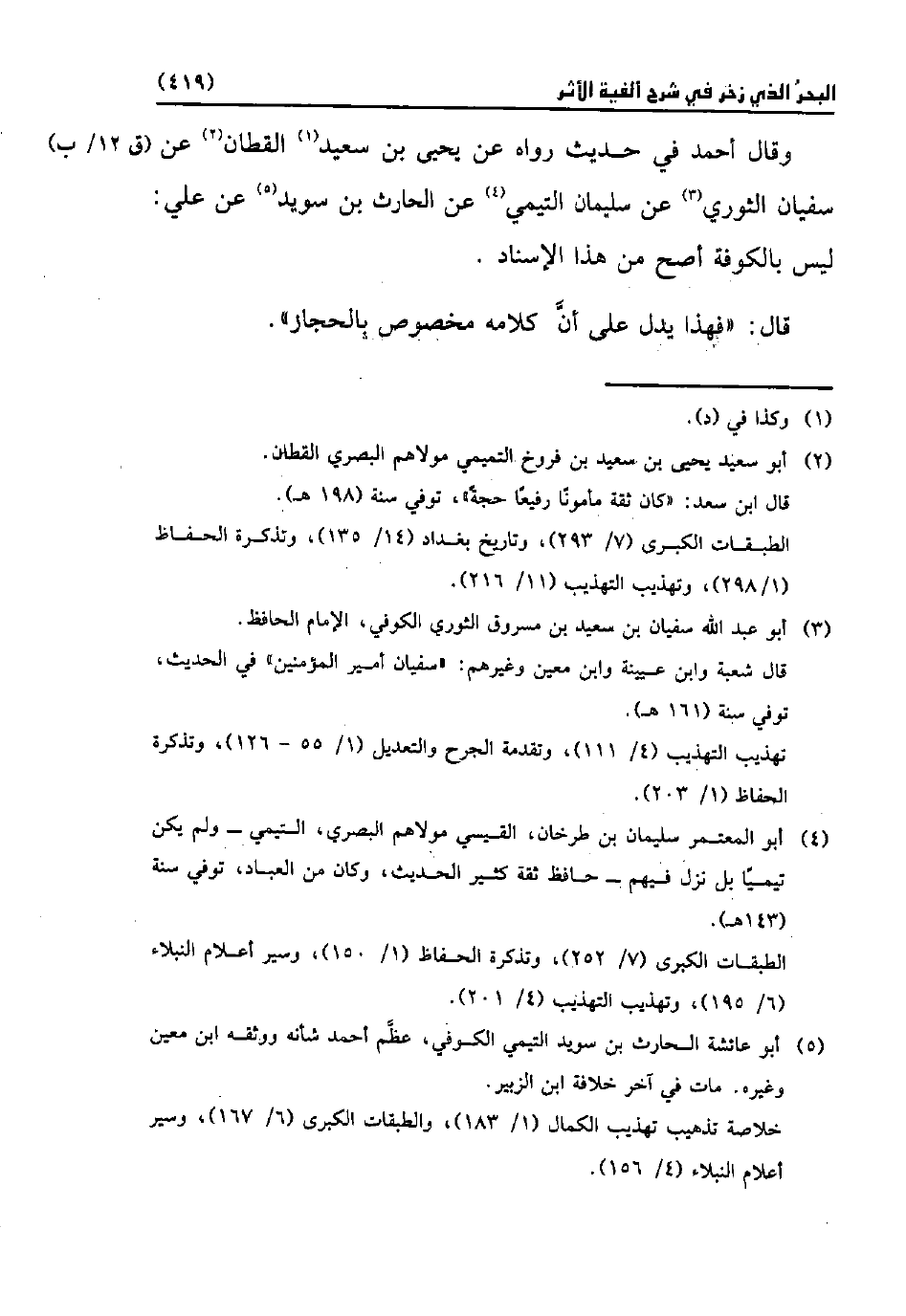 وقال أحمد في حديث رواه عن يحيى بن سعيد (¬1) القطان (¬2) عن سفيان الثوري (¬3) عن سليمان التيمي (¬4) عن الحارث بن سويد (¬5) عن علي: ليس بالكوفة أصح من هذا الإسناد.