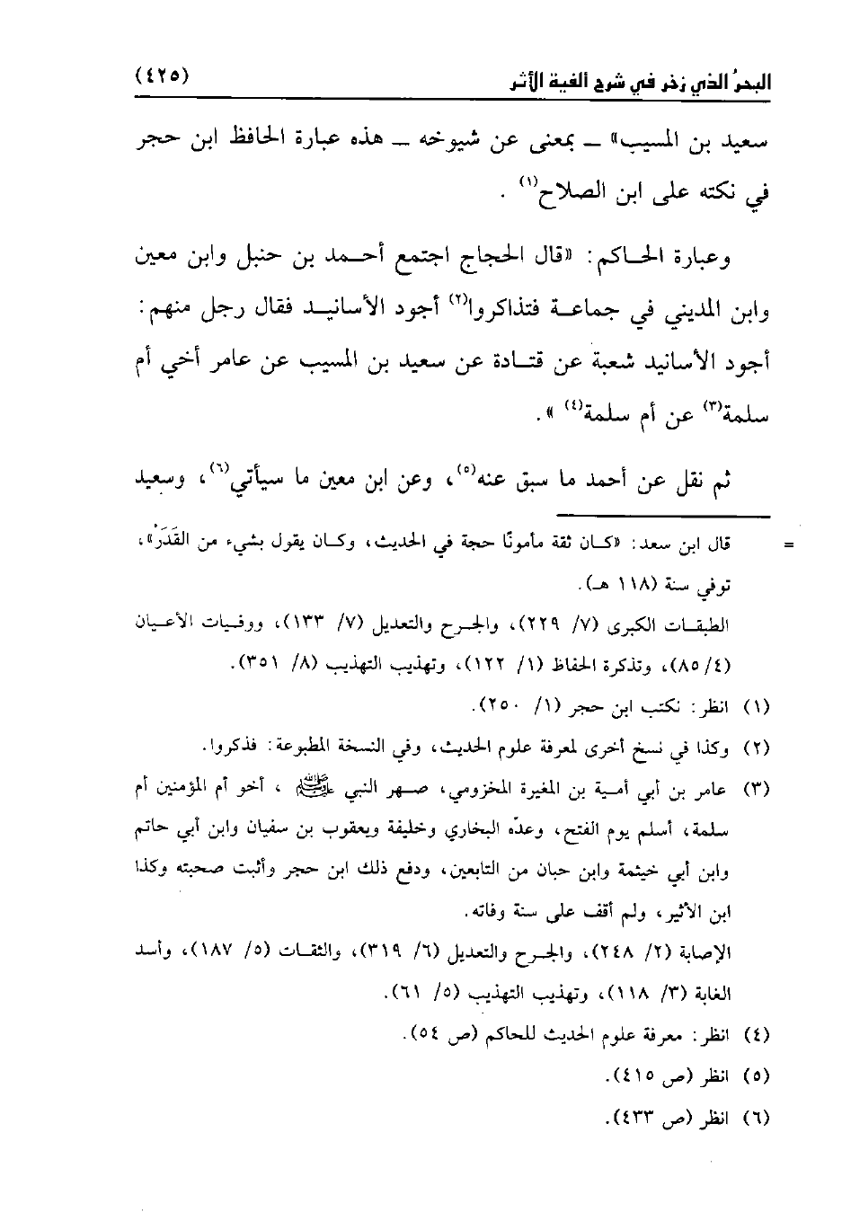 وعبارة الحاكم: "قال الحجاج اجتمع أحمد بن حنبل وابن معين وابن المديني في جماعة فتذاكروا (¬2) أجود الأسانيد فقال رجل منهم: أجود الأسانيد شعبة عن قتادة عن سعيد بن المسيب عن عامر أخي أم سلمة (¬3) عن أم سلمة (¬4) ".