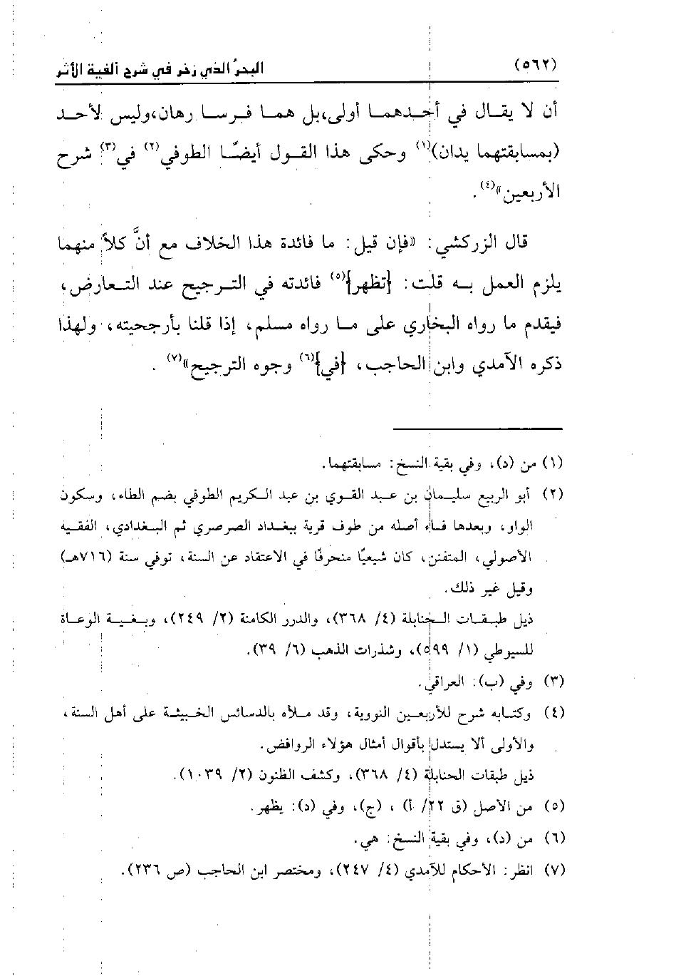 (¬2) أبو الربيع سليمان بن عبد القوي بن عبد الكريم الطوفي بضم الطاء؛ وسكون الواو، وبعدها فاء أصله من طوف قرية ببغداد الصرصري ثم البغدادي، الفقيه الصولي، المتفنن، كان شيعيا منحرفًا في الاعتقاد عن السنة، توفي سنة (716 هـ) وقيل غير ذلك.
