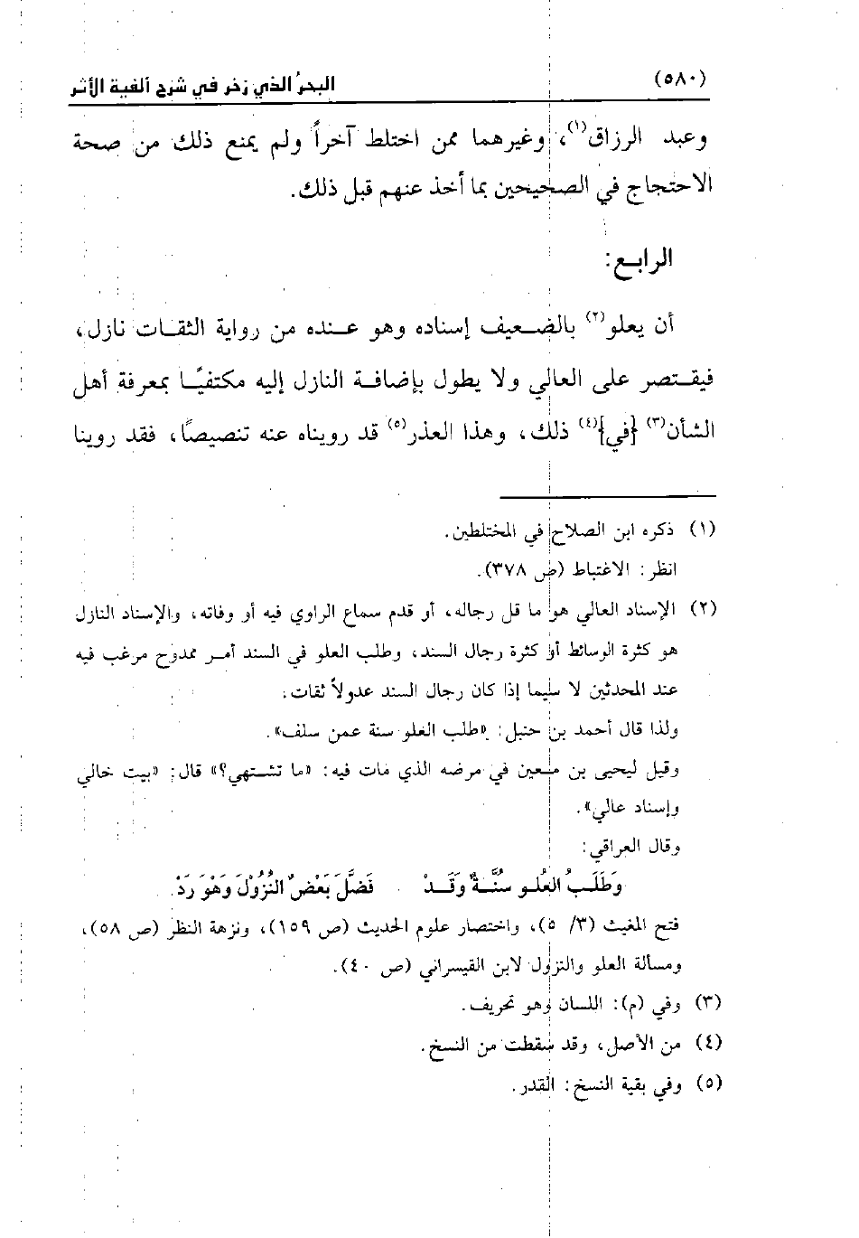 وَطَلَبُ العُلو سُنَّةٌ وَقَدْ ... فَضَّلَ بَعْضٌ النُزُوْلَ وَهْوَ رَدْ