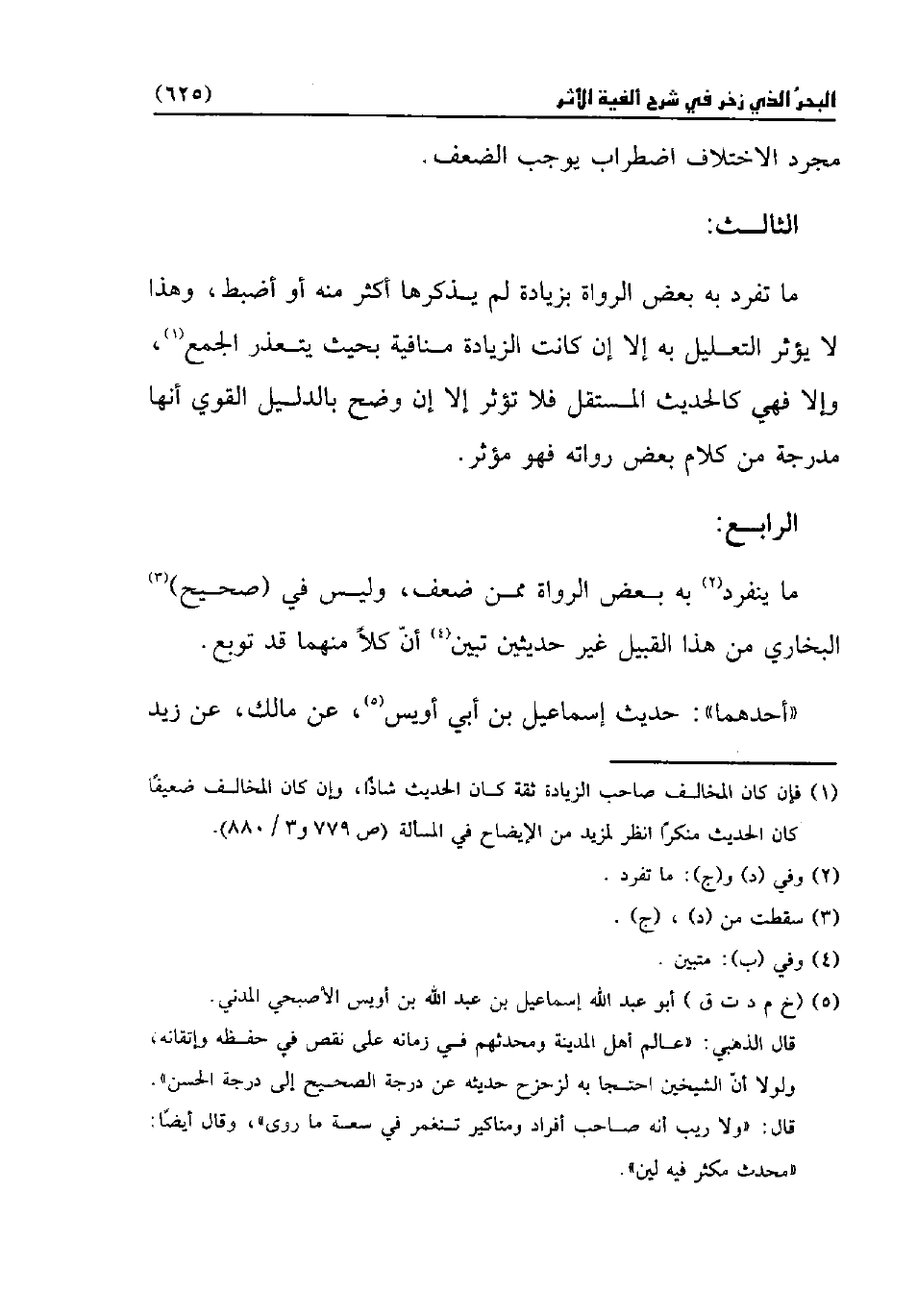 (¬1) فإن كان المخالف صاحب الزيادة ثقة كان الحديث شاذًا، وإن كان المخالف ضعيفًا كان الحديث منكرًا انظر لمزيد من الايضاح في المسألة (ص 779 و 3/ 880).