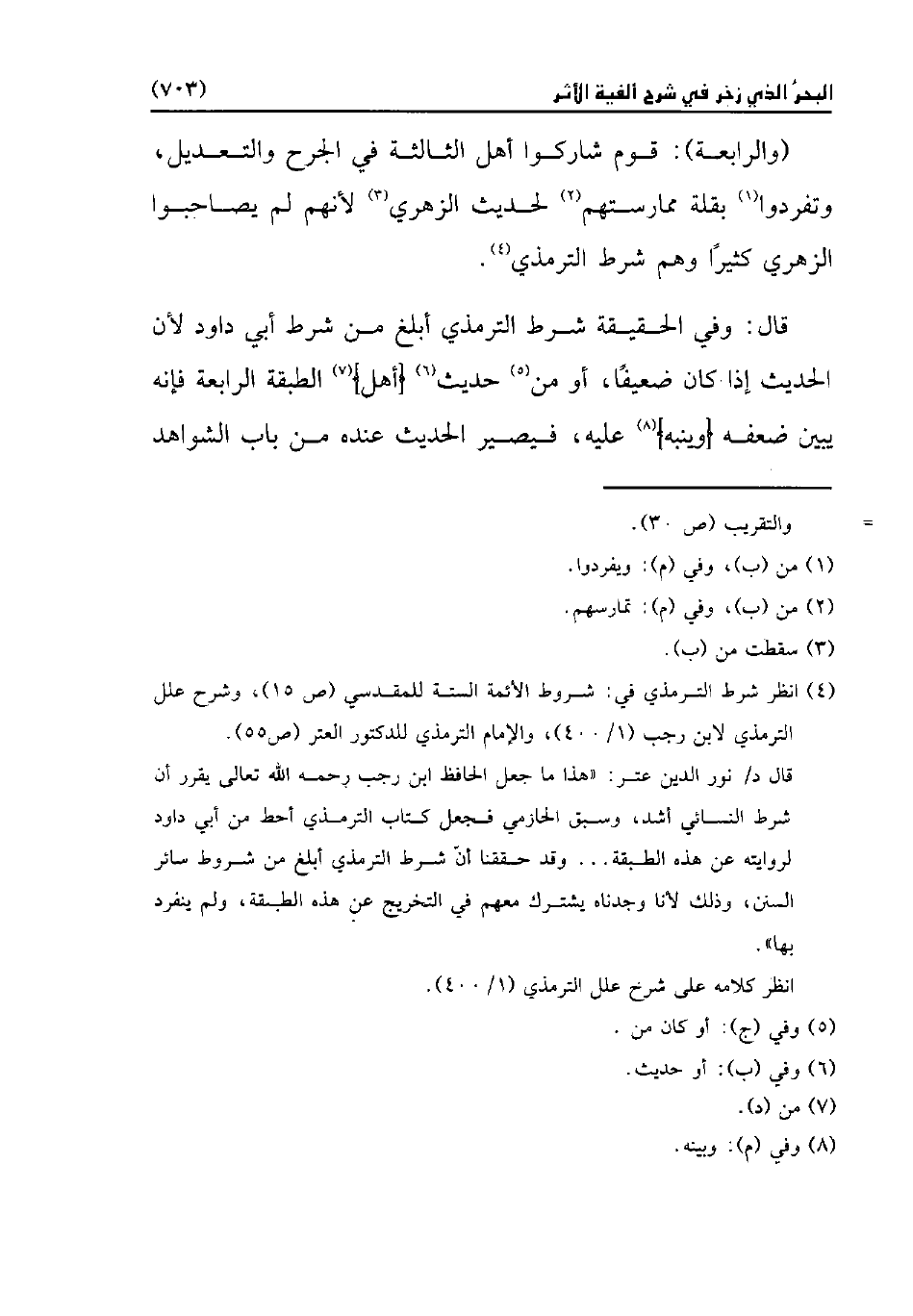 (¬4) انظر شرط الترمذي في: شروط الأئمة الستة للمقدسي (ص 15)، وشرح علل الترمذي لابن رجب (1/ 400)، والإمام الترمذي للدكتور العتر (ص 55).