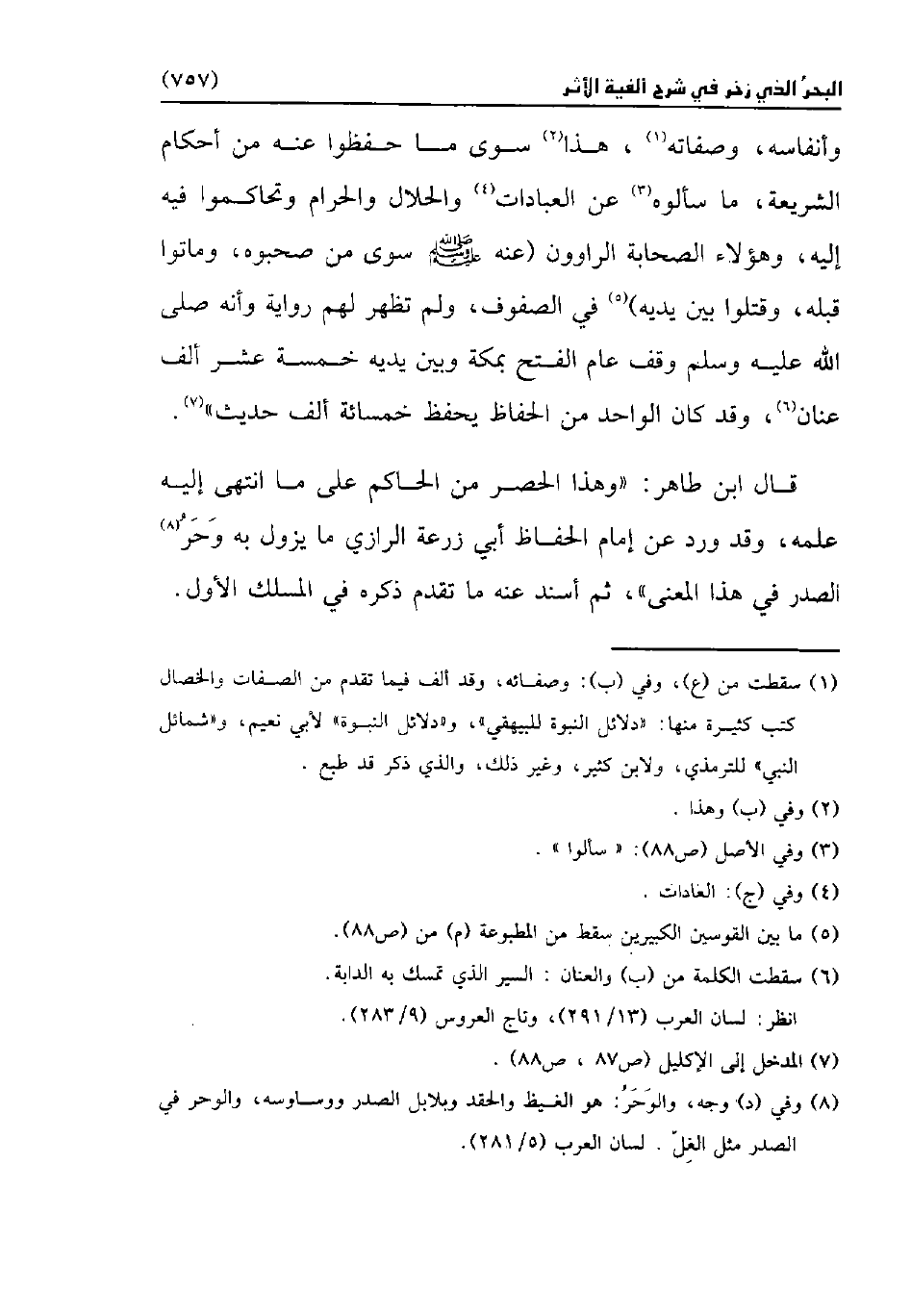 قال ابن طاهر: "وهذا الحصر من الحاكم على ما انتهى إليه علمه، وقد ورد عن إمام الحفاظ أبي زرعة الرازي ما يزول به وَحَرُ (¬8) الصدر في هذا المعنى"، ثم أسند عنه ما تقدم ذكره في المسلك الأول.