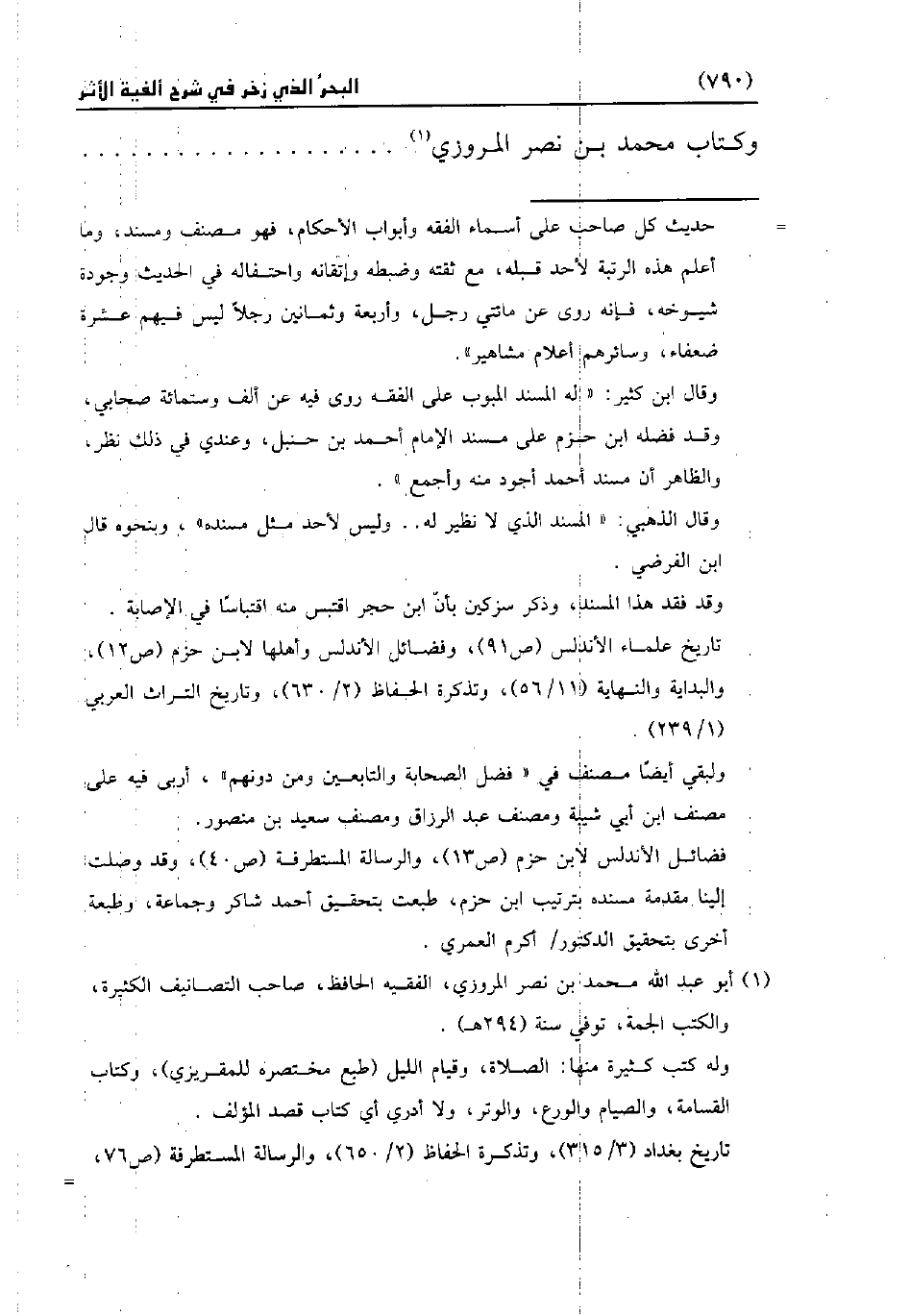 (¬1) أبو عبد اللَّه محمد بن نصر المروزي، الفقيه الحافظ، صاحب التصانيف الكثيرة، والكتب الجمة، توفي سنة (294 هـ).