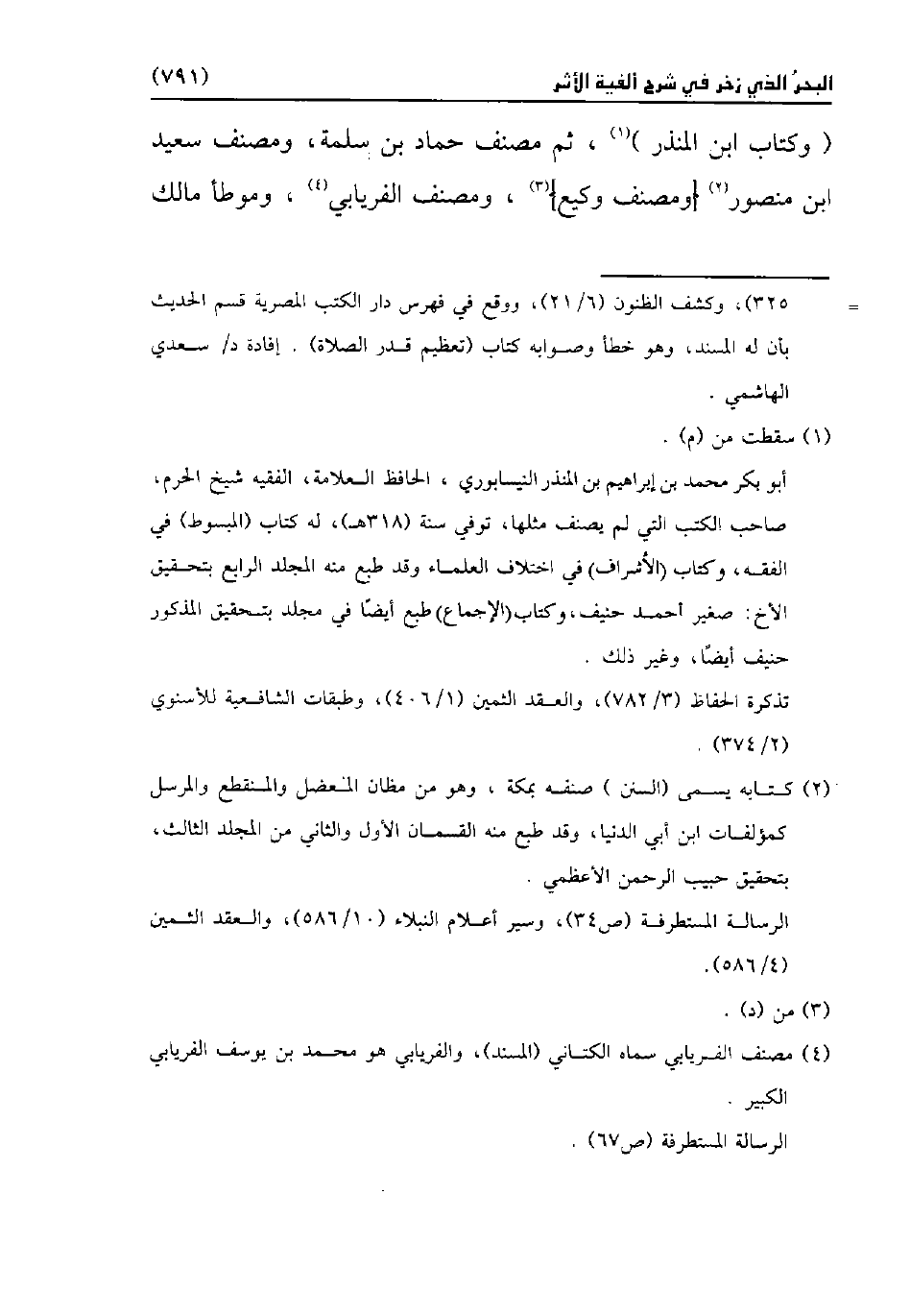(¬4) مصنف الفريابي سماه الكتاني (المسند)، والفريابي هو محمد بن يوسف الفريابي الكبير.