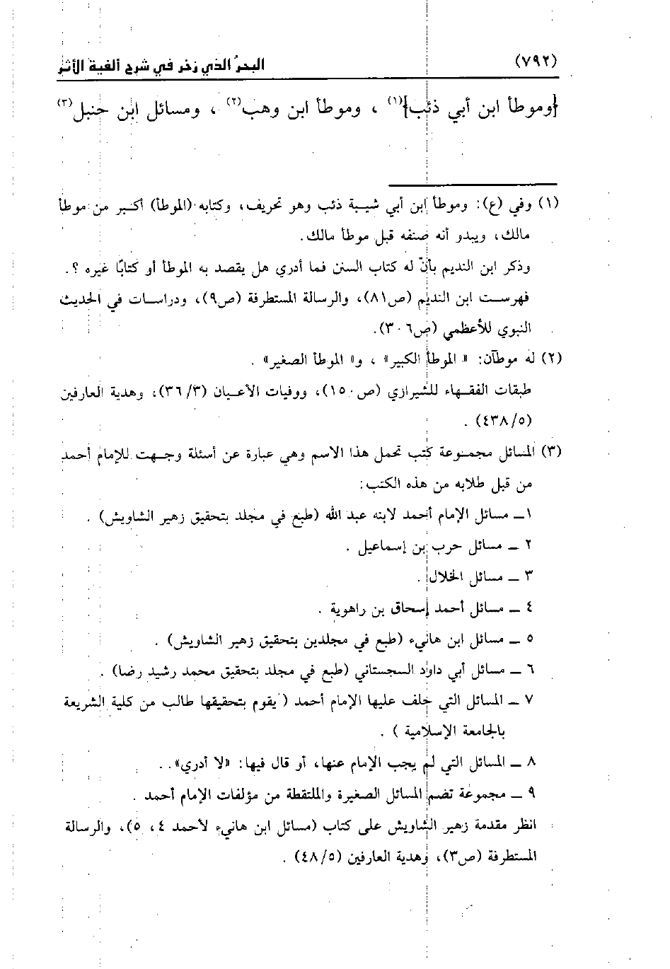[وموطأ ابن أبي ذئب] (¬1)، وموطأ ابن وهب (¬2)، ومسائل ابن حنبل (¬3)