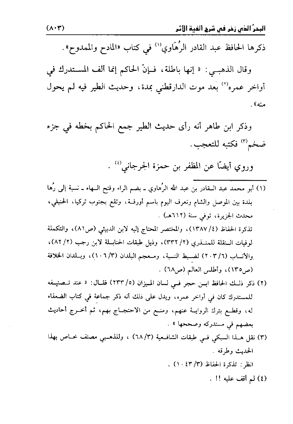 (¬1) أبو محمد عبد القادر بن عبد اللَّه الرُهاوي -بضم الراء وفتح الهاء- نسبة إلى رُها بلدة بين الموصل والشام وتعرف اليوم باسم أورفة، وتقع بجنوب تركيا، الحنبلي، محدث الجزيرة، توفي سنة (612 هـ).