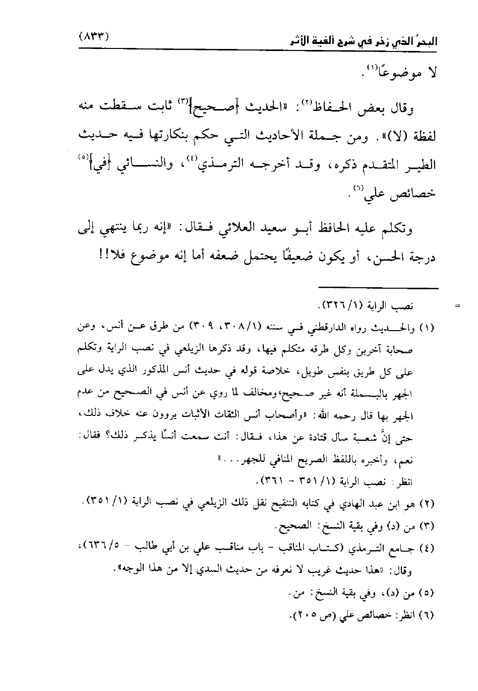 (¬2) هو ابن عبد الهادي في كتابه التنقيح نقل ذلك الزيلعي في نصب الراية (1/ 351).