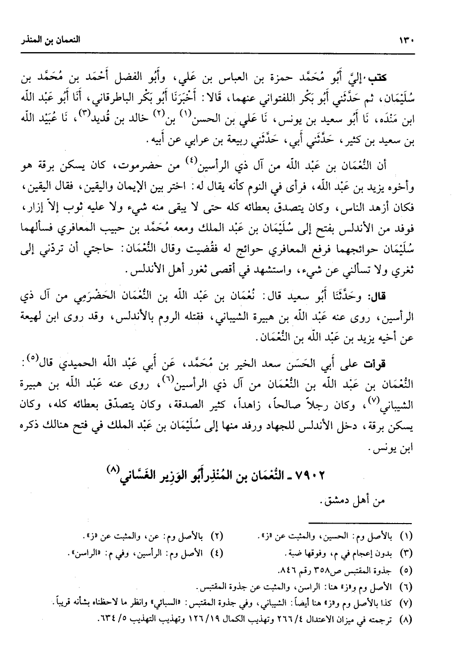 7902 - النعمان بن المنذر أبو الوزير الغساني (8) من أهل دمشق