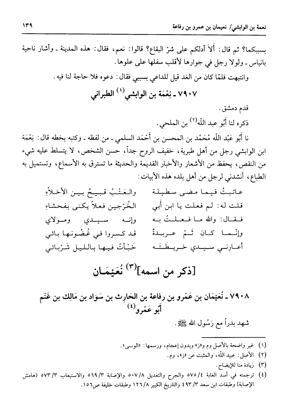 7908 - نعيمان بن عمرو بن رفاعة بن الحارث بن سواد بن مالك بن غنم أبو عمرو (4) شهد بدرا مع رسول الله (صلى الله عليه وسلم)