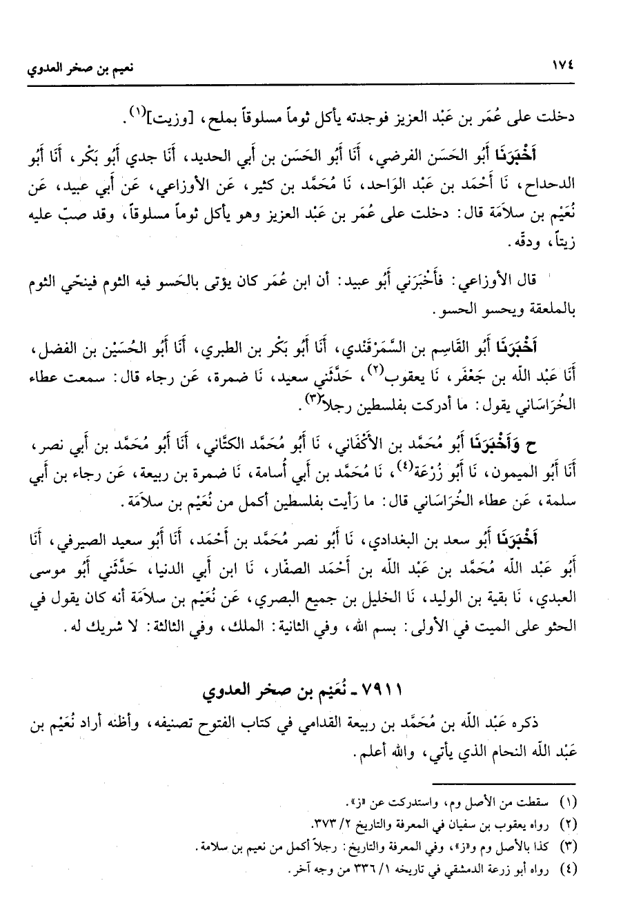 7911 - نعيم بن صخر العدوي ذكره عبد الله بن محمد بن ربيعة القدامي في كتاب الفتوح تصنيفه وأظنه أراد نعيم بن عبد الله النحام الذي يأتي والله أعلم