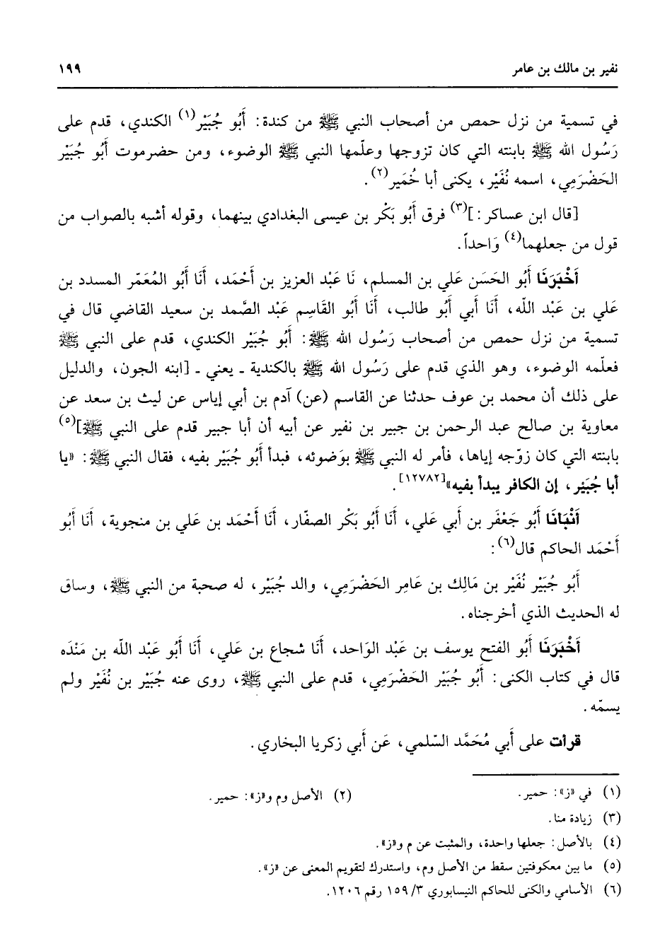 (6) الاسامي والكنى للحاكم النيسابوري 3 / 159 رقم 1206