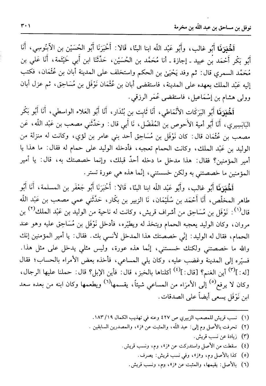 (1) نسب قريش للمصعب الزبيري ص 427 وعنه في تهذيب الكمال 19 / 183