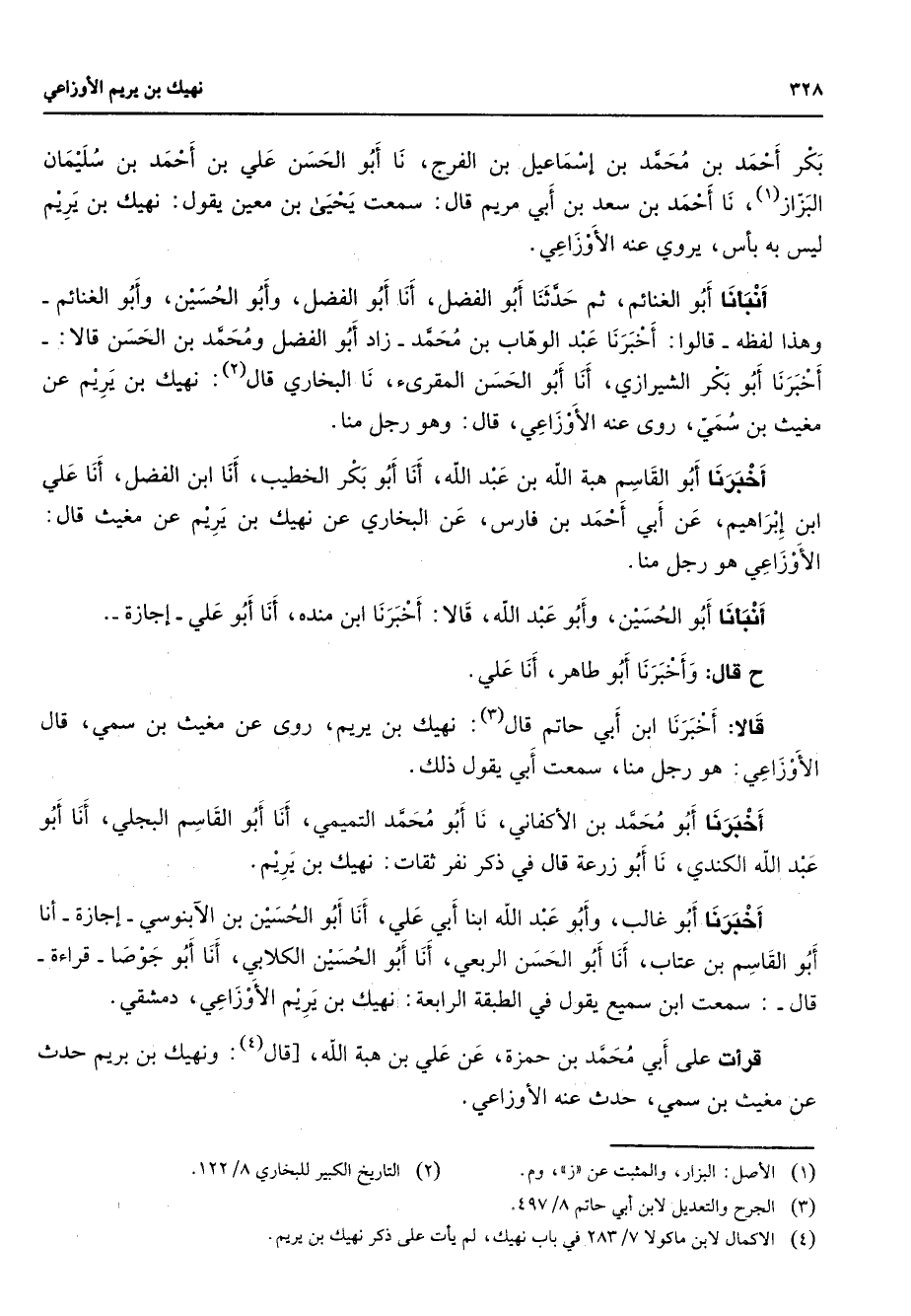 (4) الاكمال لابن ماكولا 7 / 283 في باب نهيك لم يأت على ذكر نهيك بن يريم