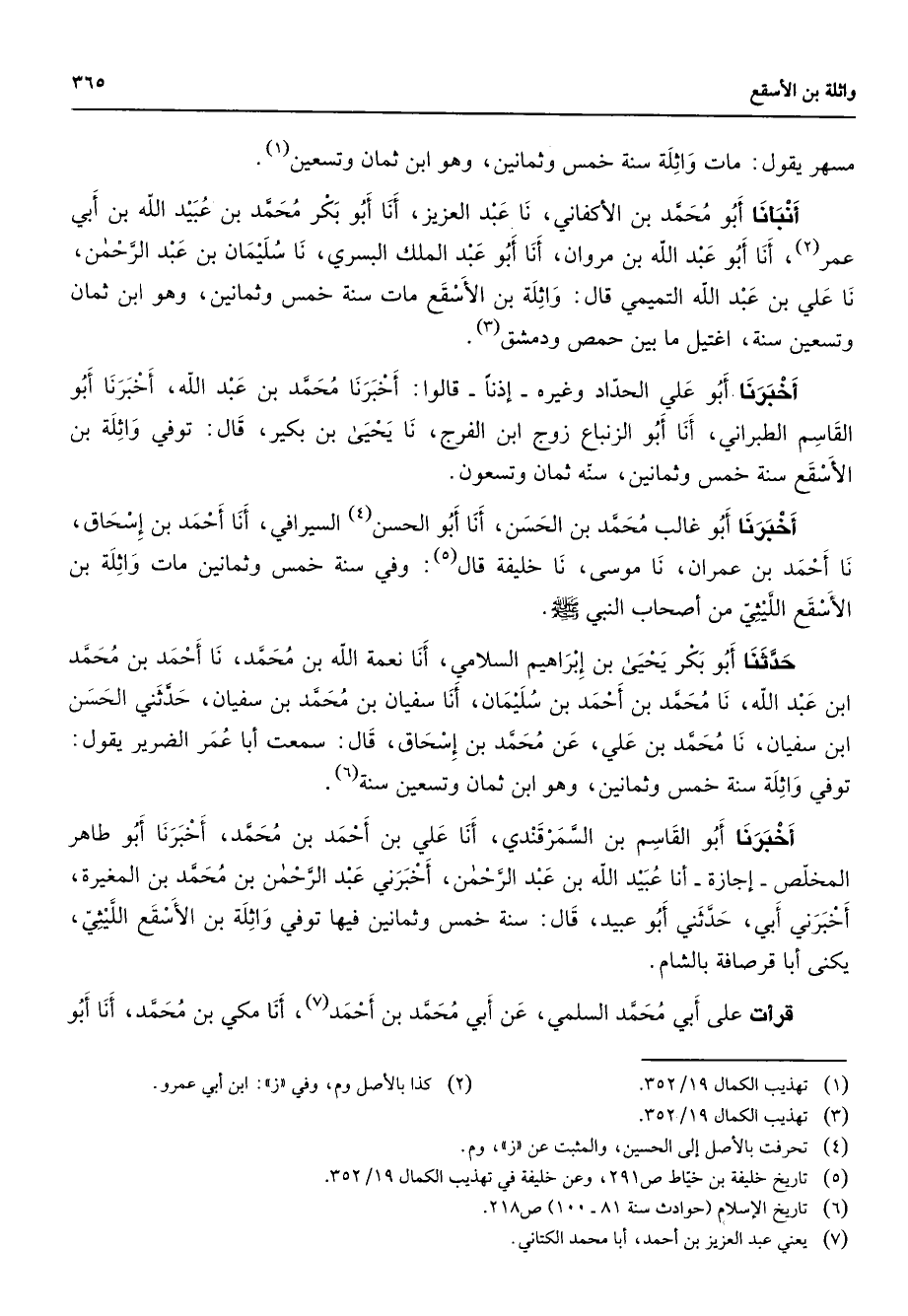 (1) تهذيب الكمال 19 / 352