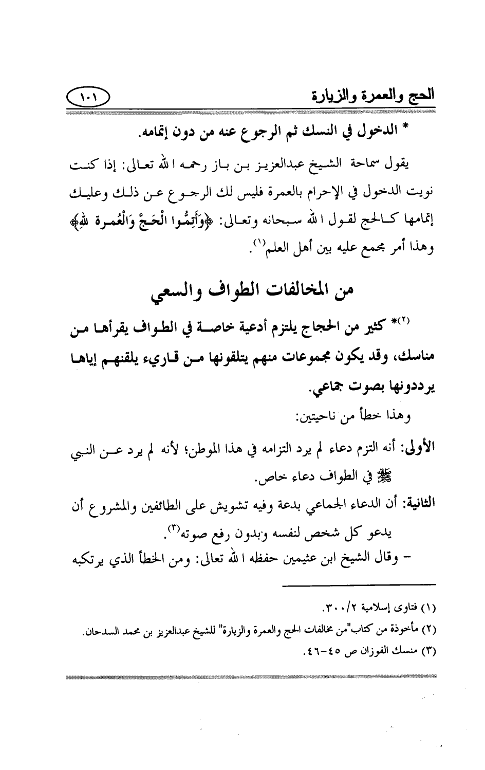 2 مأخوذة من كتاب"من مخالفات الحج والعمرة والزيارة" للشيخ عبد العزيز بن محمد السدحان.