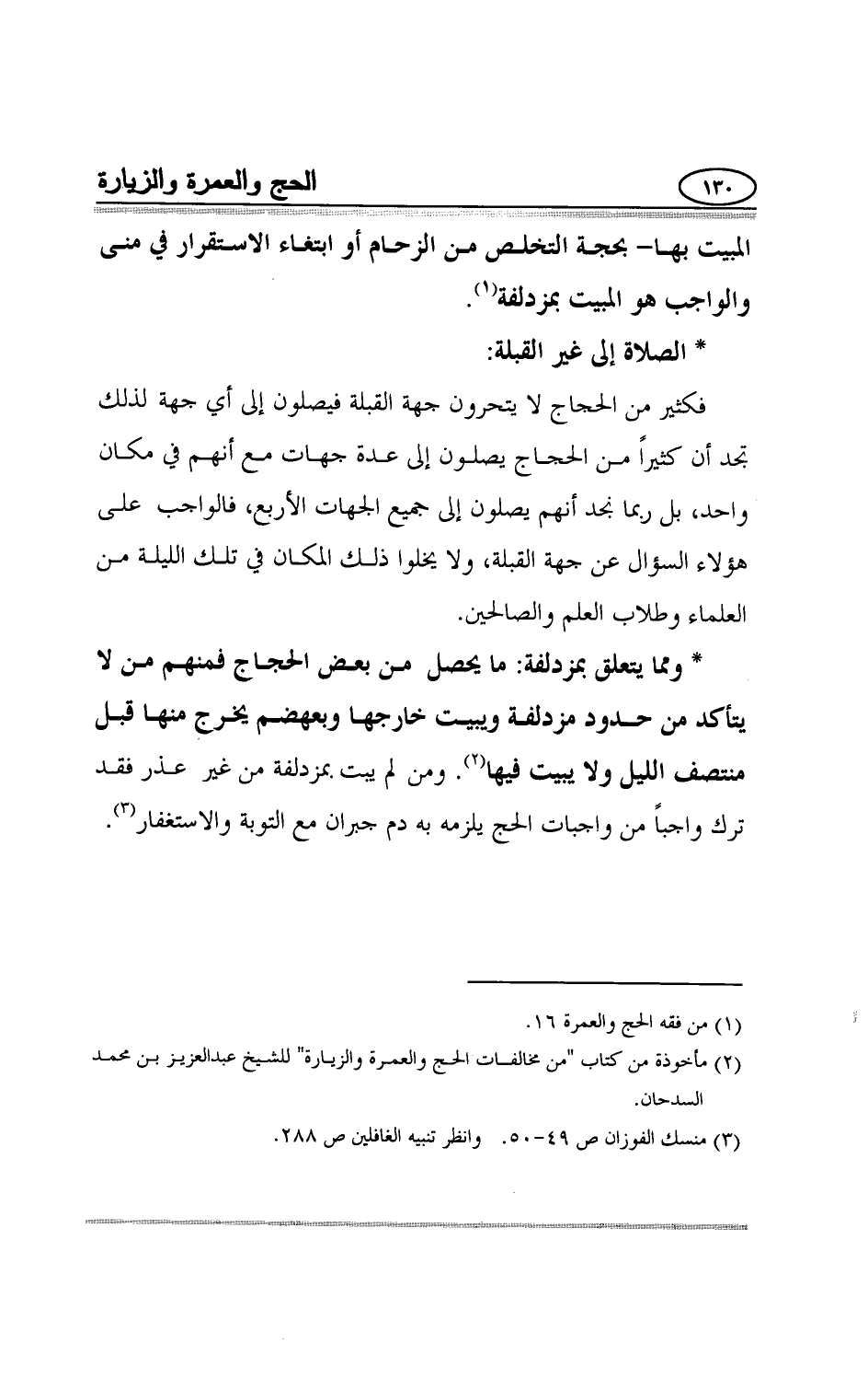 3 منسك الفوزان ص 49-50. وانظر تنبيه الغافلين ص 288.