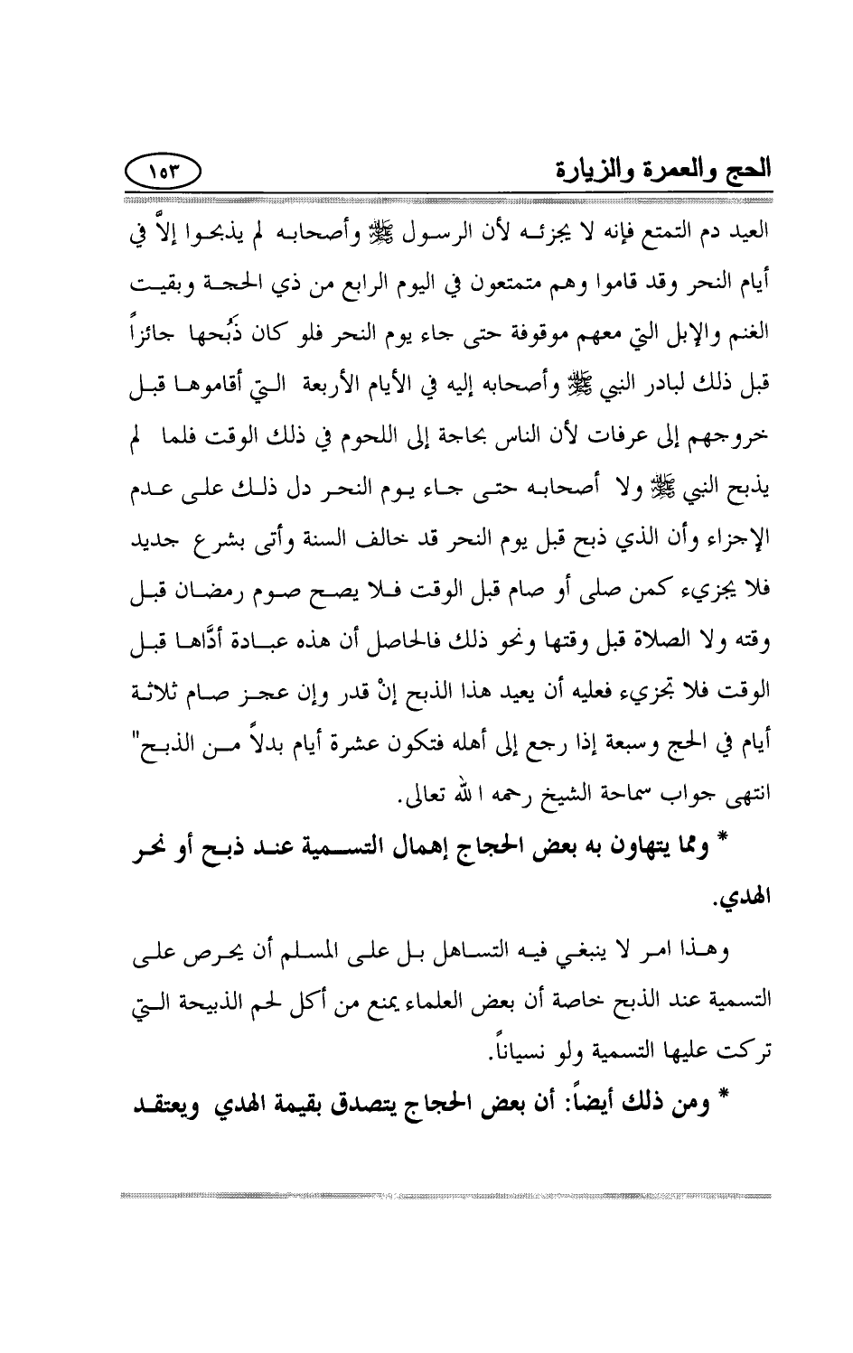 ومما يتهاون به بعض الحجاج إهمال التسمية عند ذبح أو نحر الهدي.
