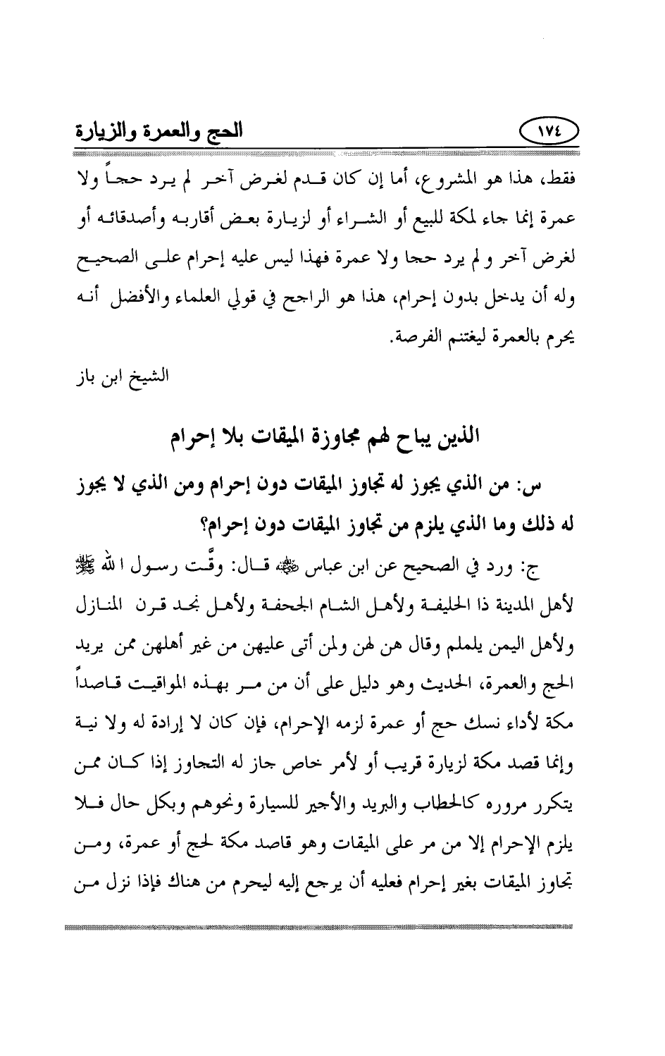 س: من الذي يجوز له تجاوز الميقات دون إحرام ومن الذي لا يجوز له ذلك وما الذي يلزم من تجاوز الميقات دون إحرام؟