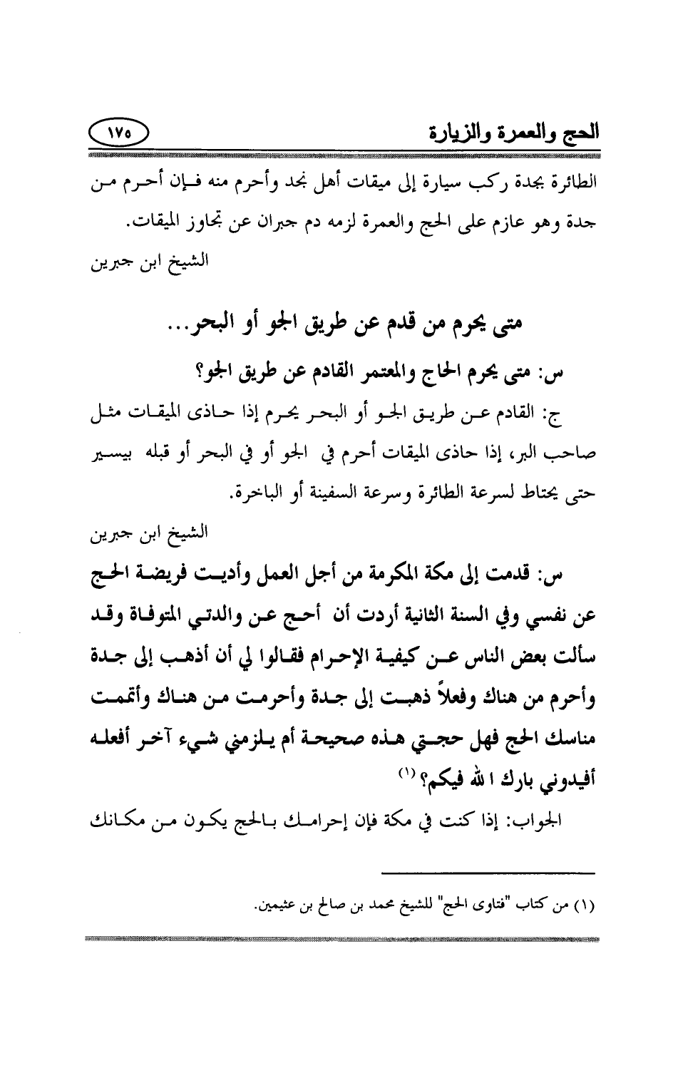1 من كتاب "فتاوى الحج" للشيخ محمد بن صالح بن عثيمين.
