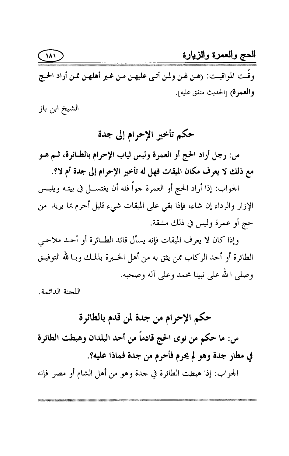 حكم الإحرام من جدة لمن قدم بالطائرة