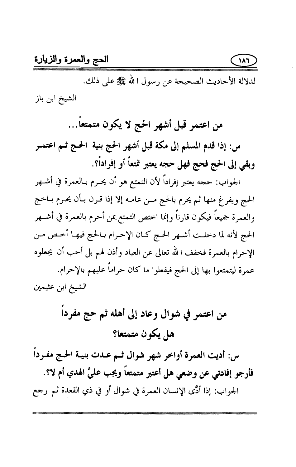 الجواب: إذا أدَّى الإنسان العمرة في شوال أو في ذي القعدة ثم رجع