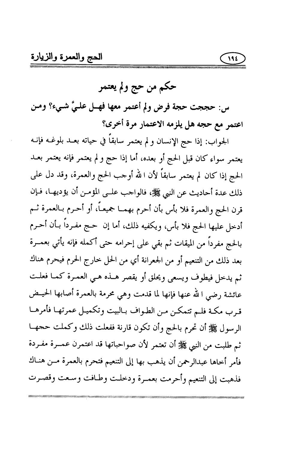 حكم من حج ولم يعتمر