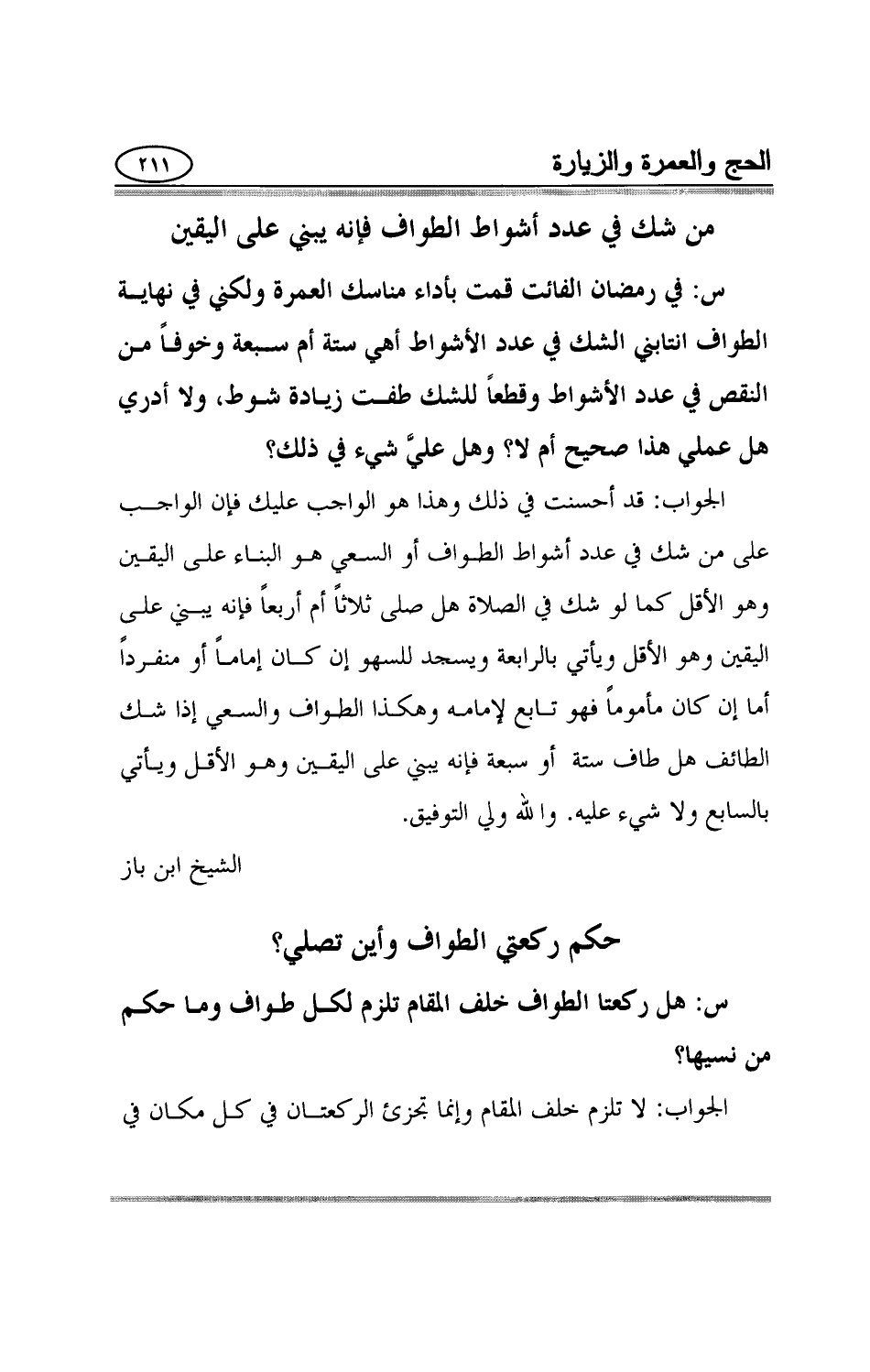 من شك في عدد أشواط الطواف فإنه يبني على اليقين