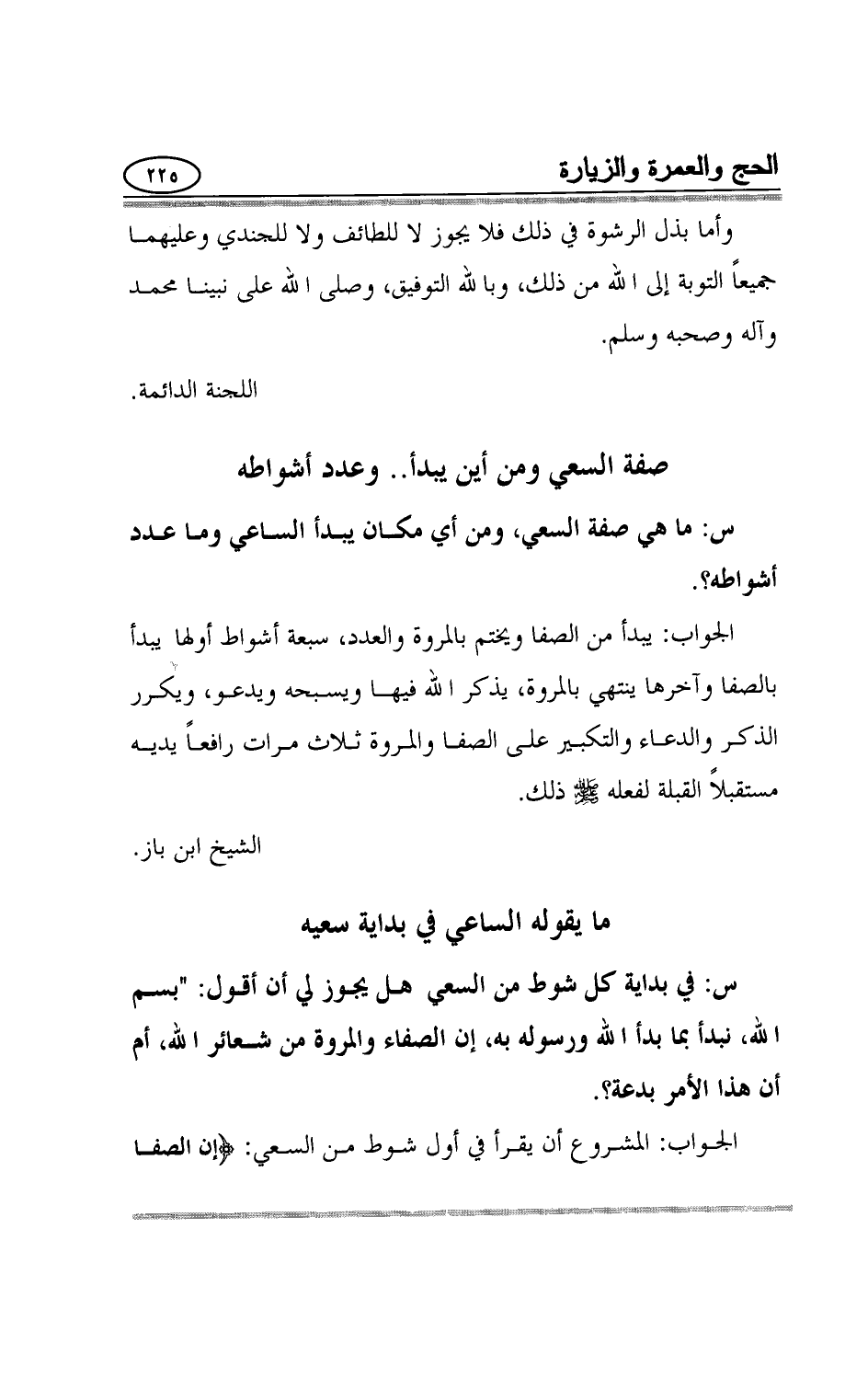 وأما بذل الرشوة في ذلك فلا يجوز لا للطائف ولا للجندي وعليهما جميعاً التوبة إلى الله من ذلك، وبالله التوفيق، وصلى الله على نبينا محمد وآله وصحبه وسلم.