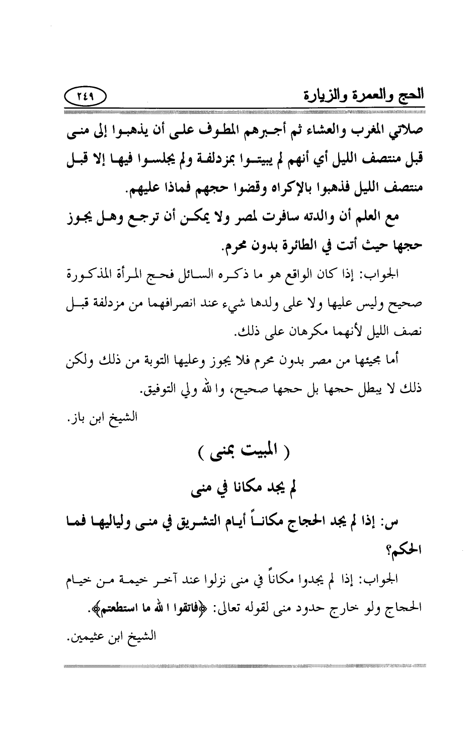 س: إذا لم يجد الحجاج مكاناً أيام التشريق في منى ولياليها فما الحكم؟