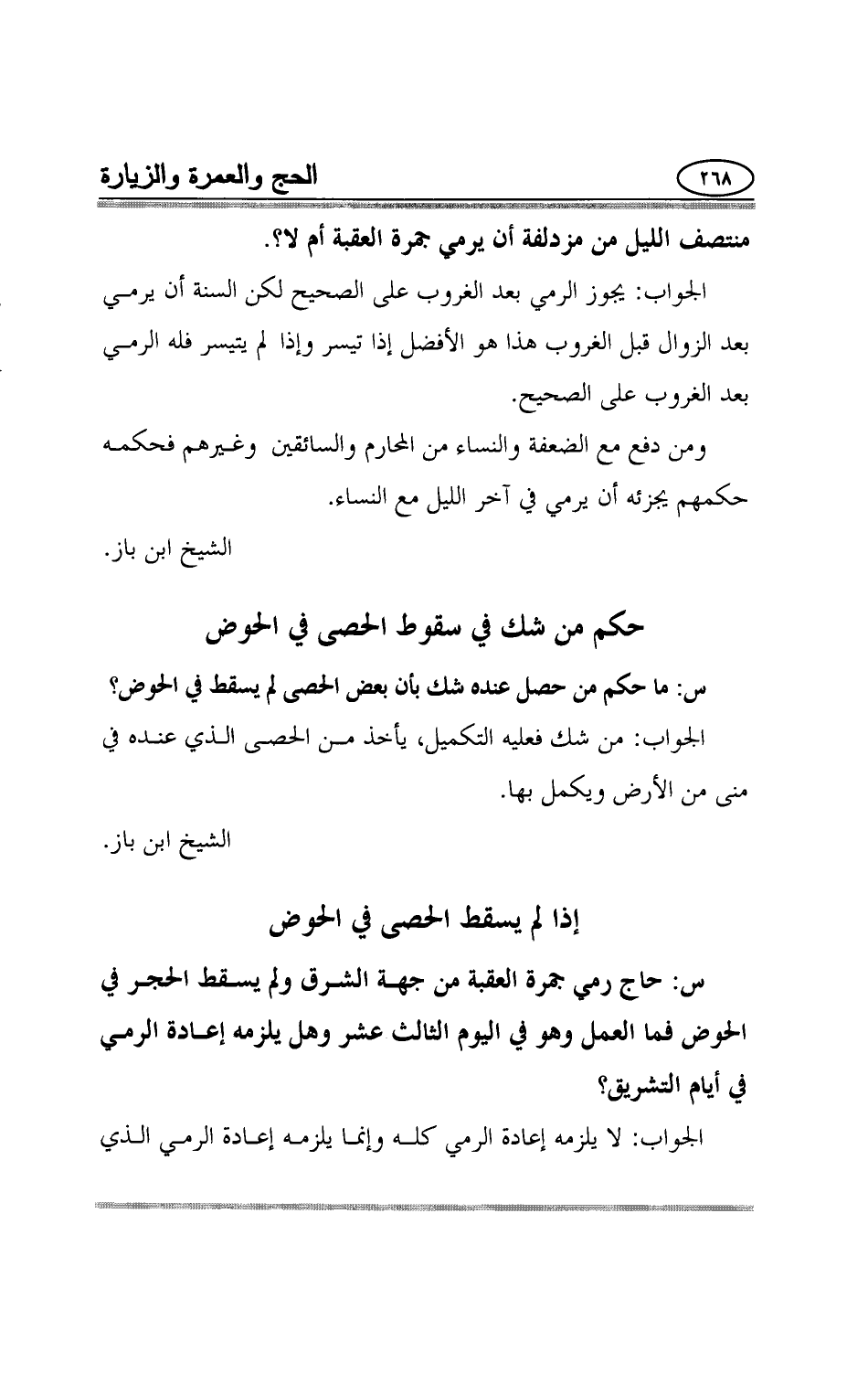 س: ما حكم من حصل عنده شك بأن بعض الحصى لم يسقط في الحوض؟