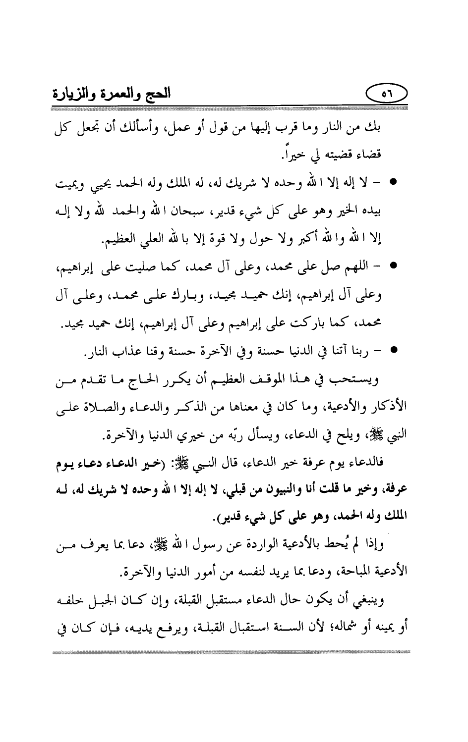وإذا لم يُحط بالأدعية الواردة عن رسول الله صلي الله عليه وسلم، دعا بما يعرف من الأدعية المباحة، ودعا بما يريد لنفسه من أمور الدنيا والآخرة وينبغي أن يكون حال الدعاء مستقبل القبلة، وإن كان الجبل خلفه أو يمينه أو شماله؛ لأن السنة استقبال القبلة، ويرفع يديه، فإن كان في