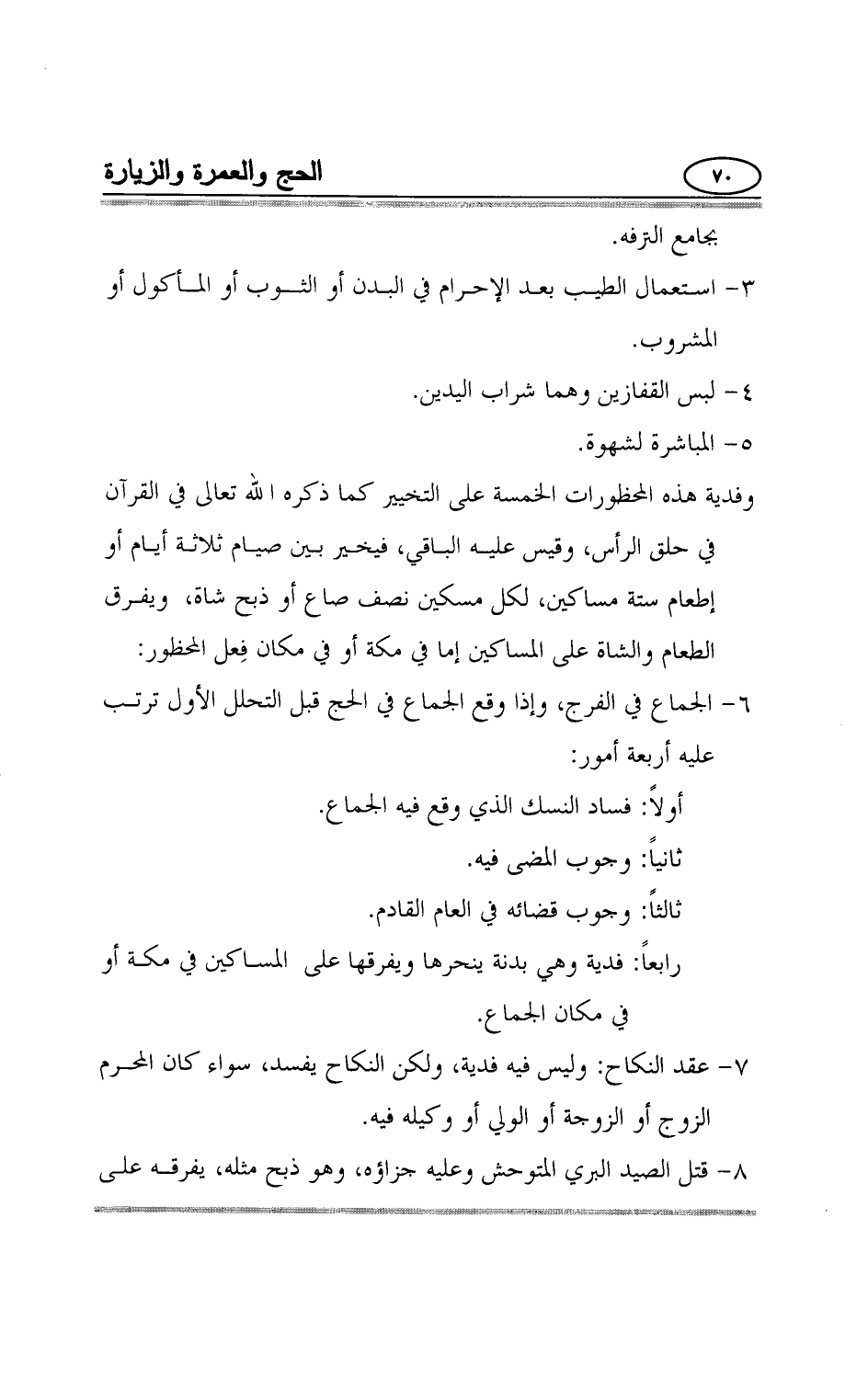 7- عقد النكاح: وليس فيه فدية، ولكن النكاح يفسد، سواء كان المحرم الزوج أو الزوجة أو الولي أو وكيله فيه.