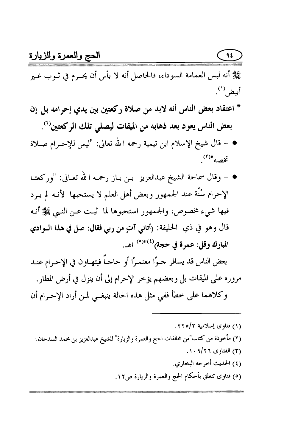 5 فتاوى تتعلق بأحكام الحج والعمرة والزيارة ص12.
