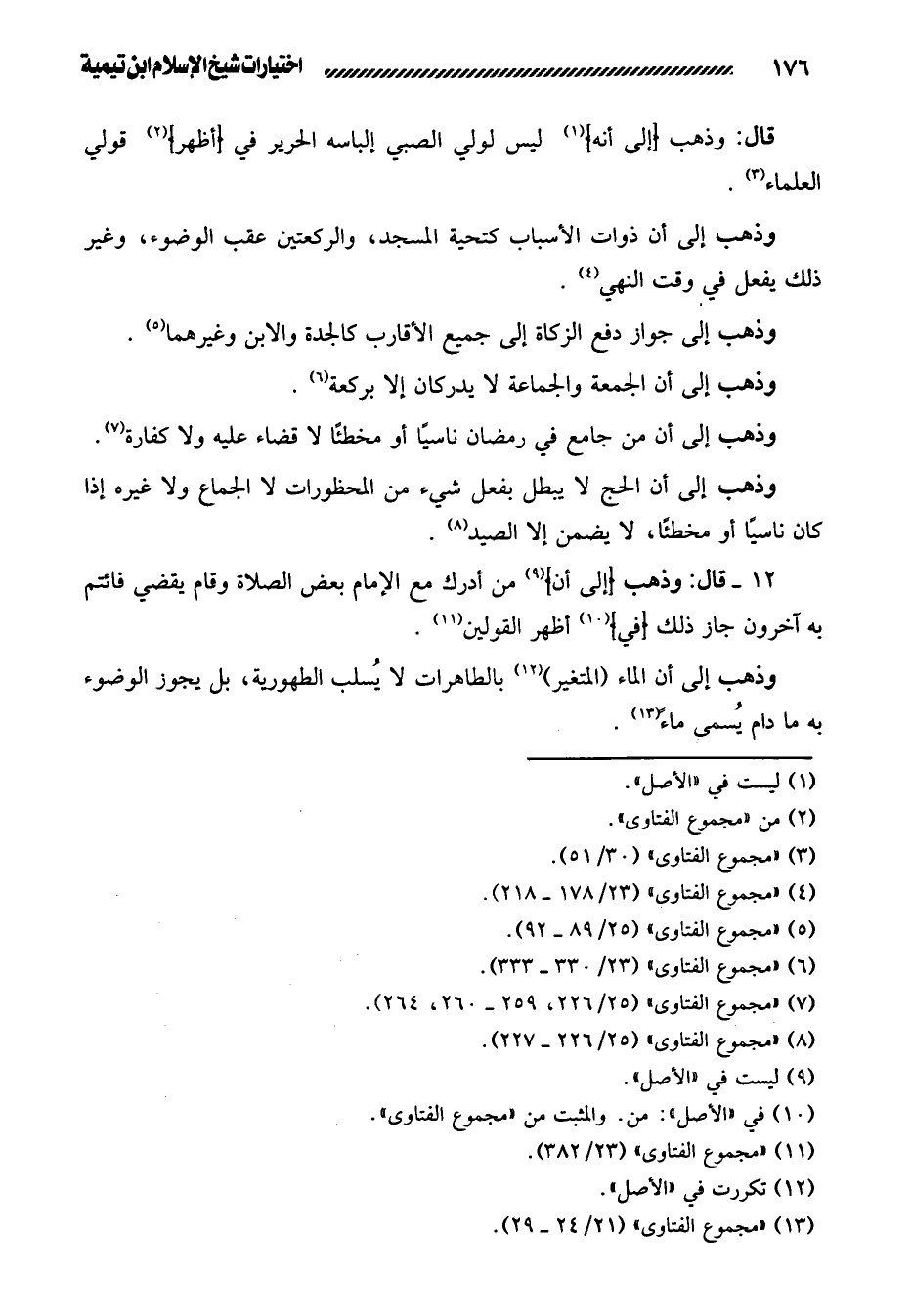 13- وذهب إلى أن الماء (المتغير) بالطاهرات لا يُسلب الطهورية، بل يجوز الوضوء به ما دام يُسمى ماءً.