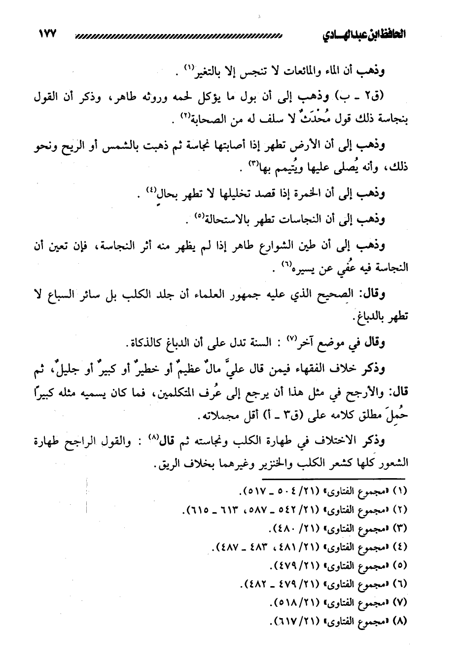 15- / وذهب إلى أن بول ما يؤكل لحمه وروثه طاهر، وذكر أن القول بنجاسة ذلك قول مُحْدَثٌ لا سلف له من الصحابة.