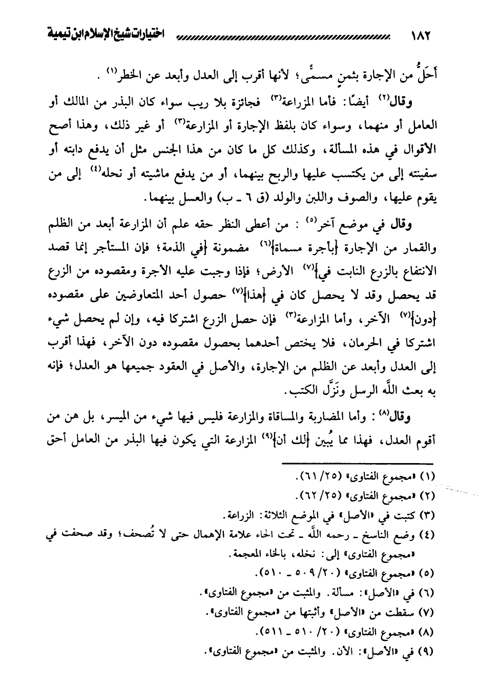 وقال: وأما المضاربة والمساقاة والمزارعة فليس فيها شيء من الميسر، بل هن من أقوم العدل، فهذا مما يُبين [لك أن] المزارعة التي يكون فيها البذر من العامل أحق