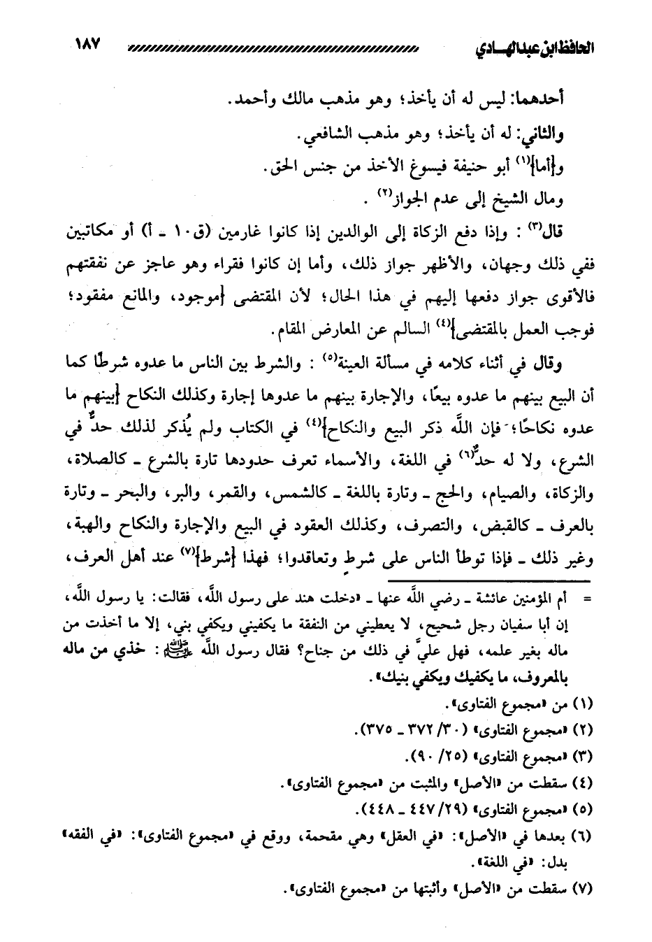 61- وقال في أثناء كلامه في مسألة العينة: والشرط بين الناس ما عدوه شرطًا كما أن البيع بينهم ما عدوه بيعًا، والإجارة بينهم ما عدوها إجارة، وكذلك النكاح [بينهم ما عدوه نكاحًا؛ فإن الله ذكر البيع والنكاح] في كتابه ولم يُذكر لذلك حدٌّ في الشرع، ولا له حدٌّ في اللغة، والأسماء تعرف حدودها تارة بالشرع - كالصلاة، والزكاة، والصيام، والحج - وتارة باللغة - كالشمس، والقمر، والبر، والبحر - وتارة بالعرف - كالقبض، والتصرف، وكذلك العقود كالبيع والإجارة والنكاح والهبة، وغير ذلك - فإذا تواطأ الناس على شرطٍ وتعاقدوا؛ فهذا [شرط] عند أهل العرف، والله أعلم.