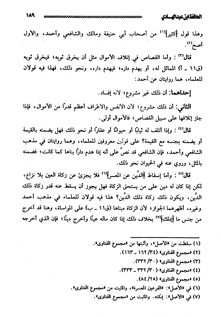 66- قال: وإذا أتلف له ثيابًا أو حيوانًا أو عقارًا أو نحو ذلك فهل يضمنه بالقيمة أو يضمنه بجنسه مع القيمة؟ على قولين معروفين للعلماء، وهما روايتان في مذهب الشافعي وأحمد، فإن الشافعي قد نصَّ على أنه إذا هدم دارًا بناها كما كانت؛ فضمنه بالمثل، وروي عنه في الحيوان نحو ذلك.