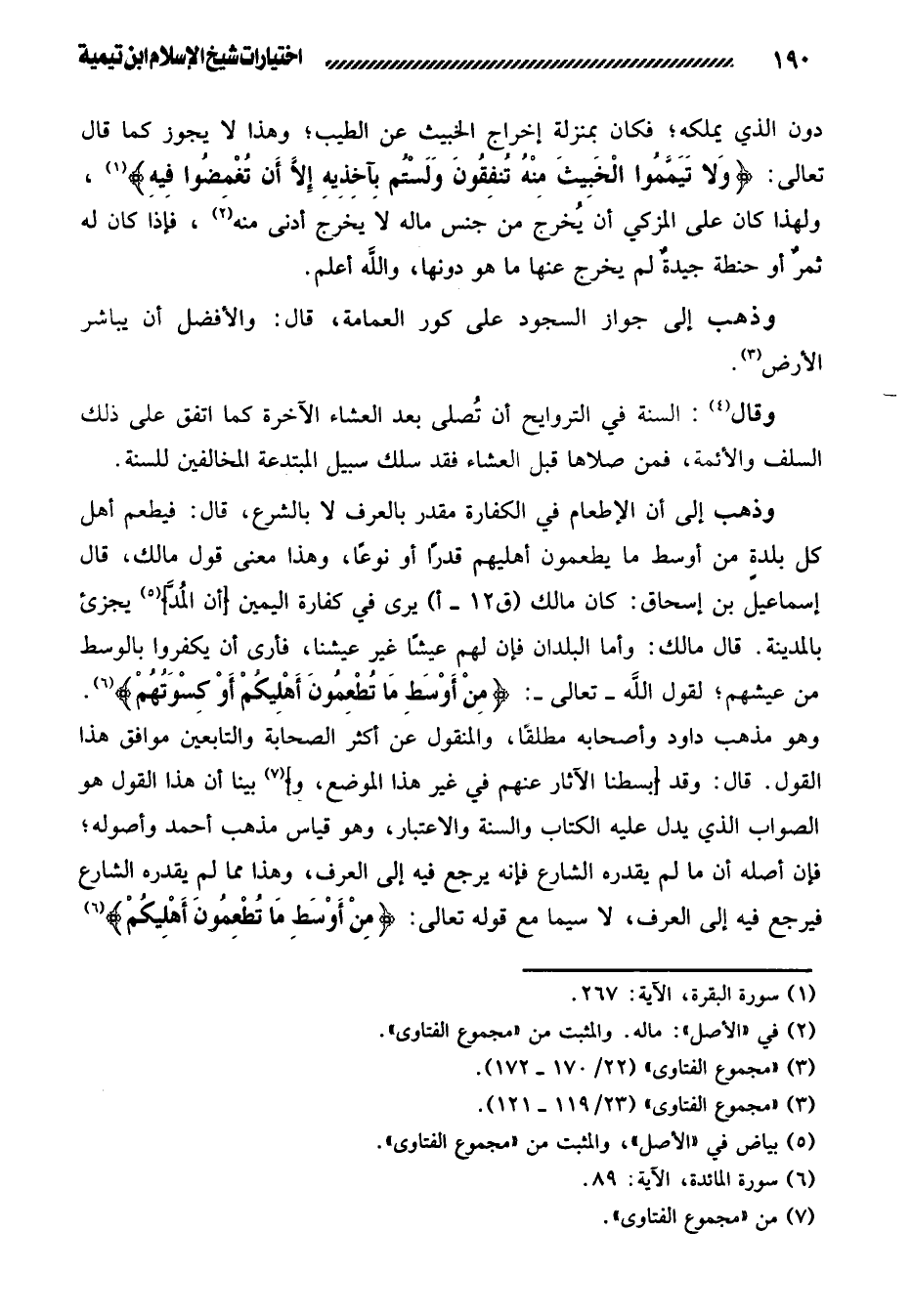 70- وذهب إلى أن الإطعام في الكفارة مقدر بالعرف لا بالشرع، قال: فيطعم أهل كل بلدةٍ من أوسط ما يطعمون أهليهم قدرًا أو نوعًا، وهذا معنى قول مالك، قال إسماعيل بن إسحاق: كان مالك / يرى في كفارة اليمين [أن المُدَّ] يجزئ بالمدينة. قال مالك: وأما البلدان فإن لهم عيشًا غير عيشنا، فأرى أن يكفروا بالوسط من عيشهم؛ لقول الله - تعالى -: {مِنْ أَوْسَطِ مَا تُطْعِمُونَ أَهْلِيكُمْ أَوْ كِسْوَتُهُمْ} . وهو مذهب داود وأصحابه مطلقًا، والمنقول عن أكثر الصحابة والتابعين يوافق هذا القول. وقد [بسطنا الآثار عنهم في غير هذا الموضع، و] بينا أن هذا القول هو الصواب الذي يدل عليه الكتاب والسنة والاعتبار، وهو قياس مذهب أحمد وأصوله؛ فإن أصله أن ما لم يقدره الشارع فإنه يرجع فيه إلى العرف، وهذا مما لم يقدره الشارع فيرجع فيه إلى العرف لا سيما مع قوله تعالى: {مِنْ أَوْسَطِ مَا تُطْعِمُونَ أَهْلِيكُمْ}
